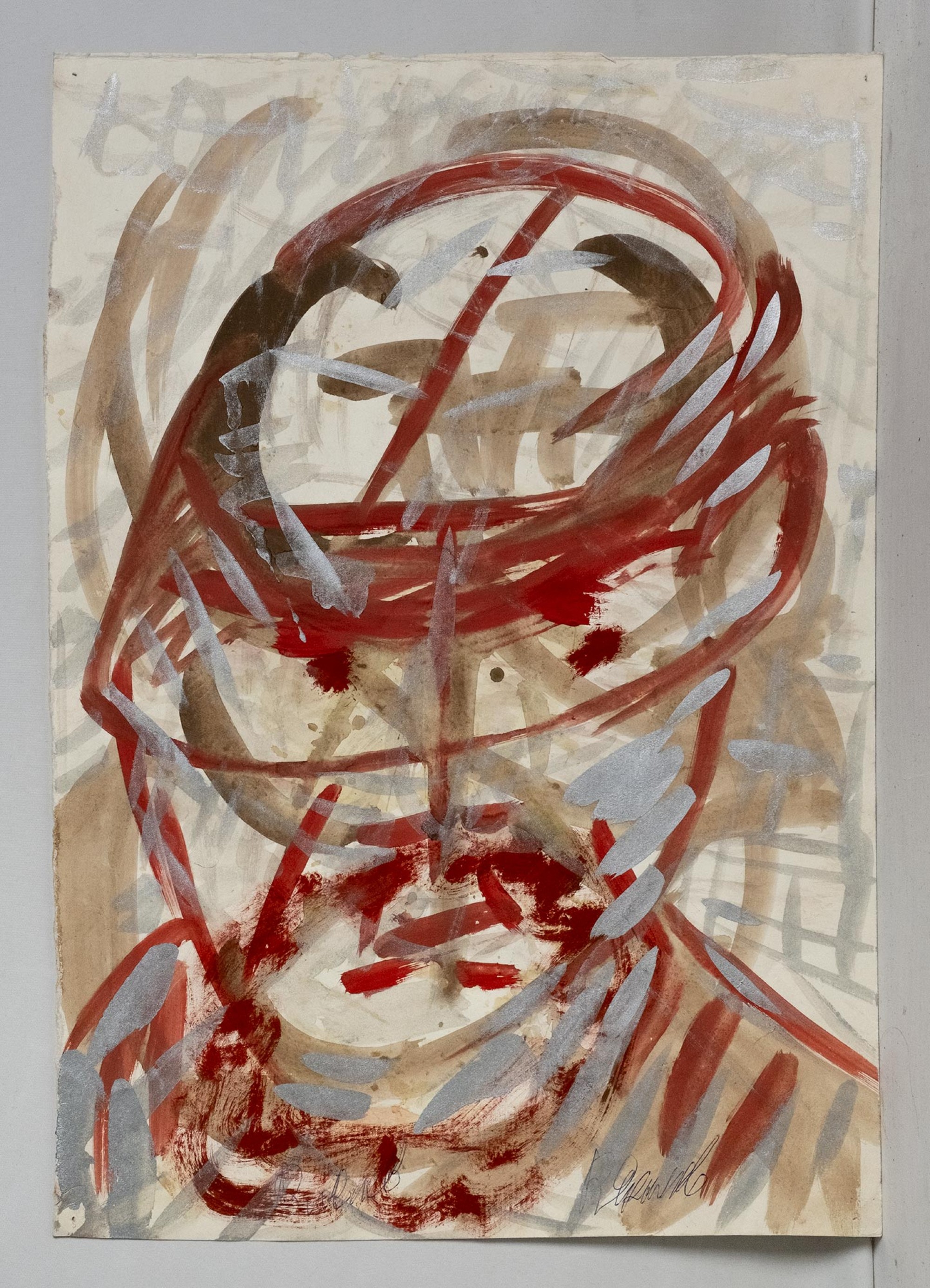 Бумага, гуашь, серебряная краска. 43 × 30