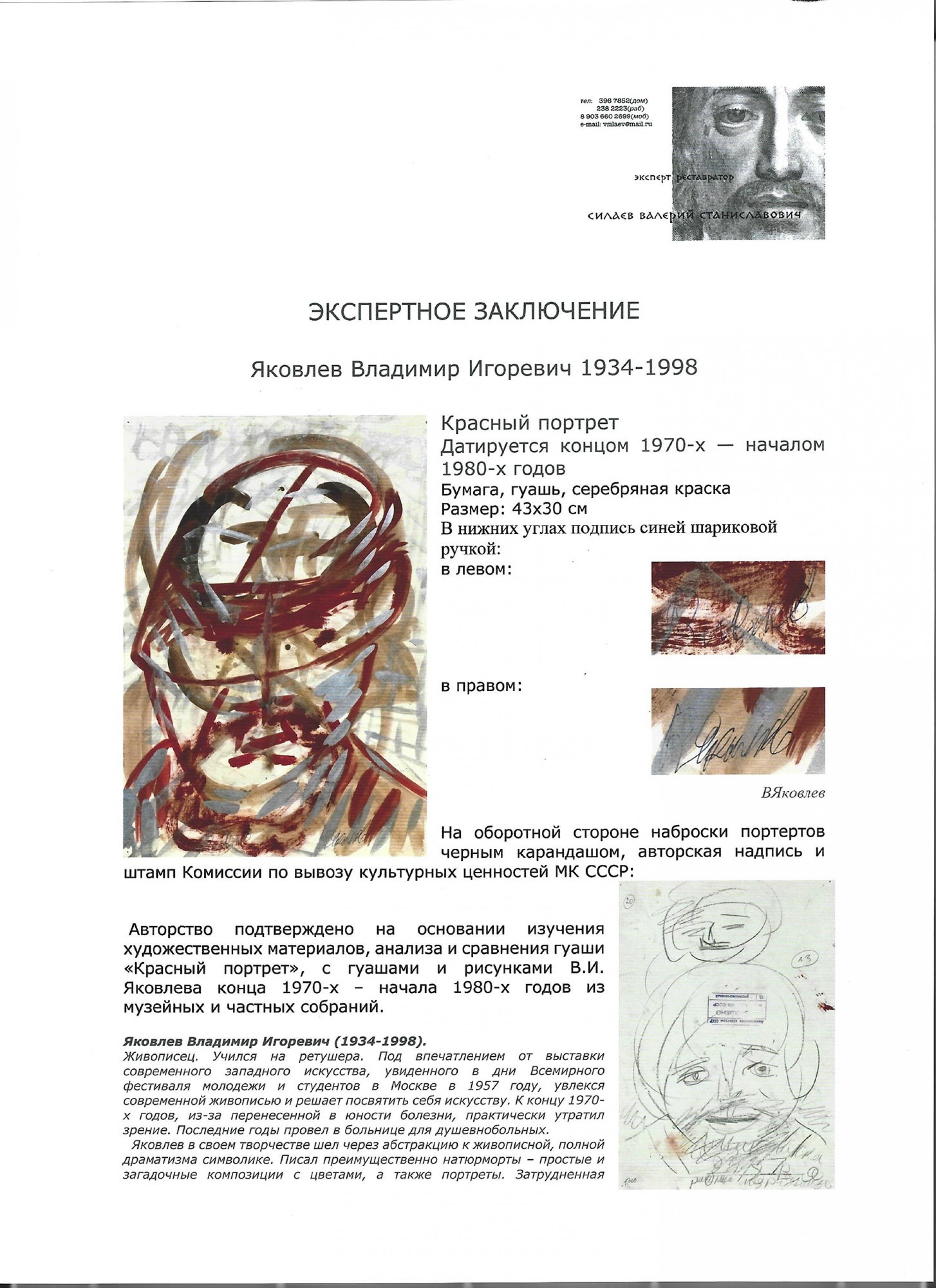 ЯКОВЛЕВ Владимир Игоревич (1934–1998) Красный портрет. Конец 1970‑х — начало 1980‑х ID лота: 113505