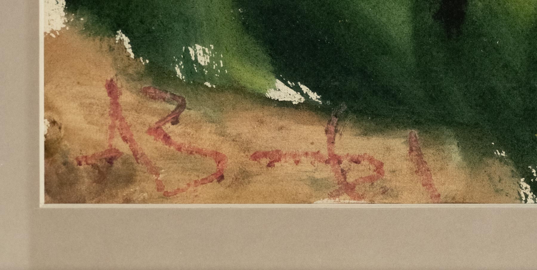 Работа оформлена в паспарту в раме под стеклом. Размер в раме: 64 × 52