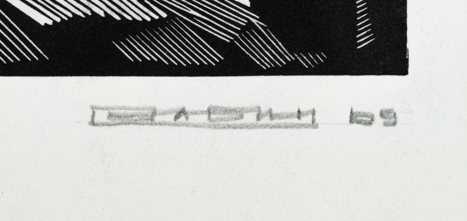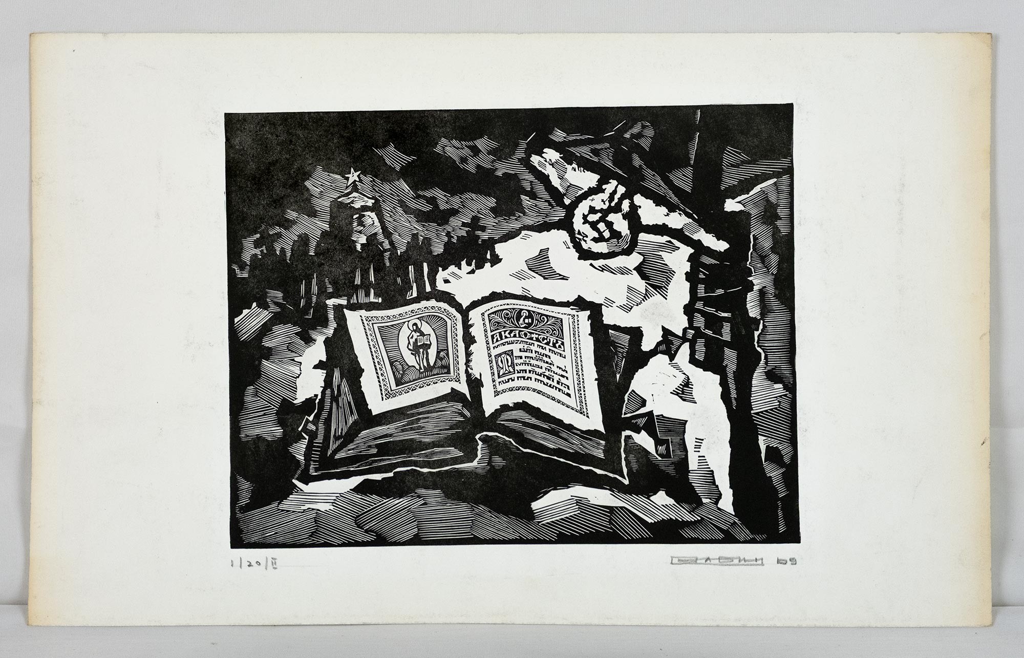 Линогравюра на бумаге. 21 × 27 (изображение). 28,5 × 46 (лист). Тираж I | 20 | II