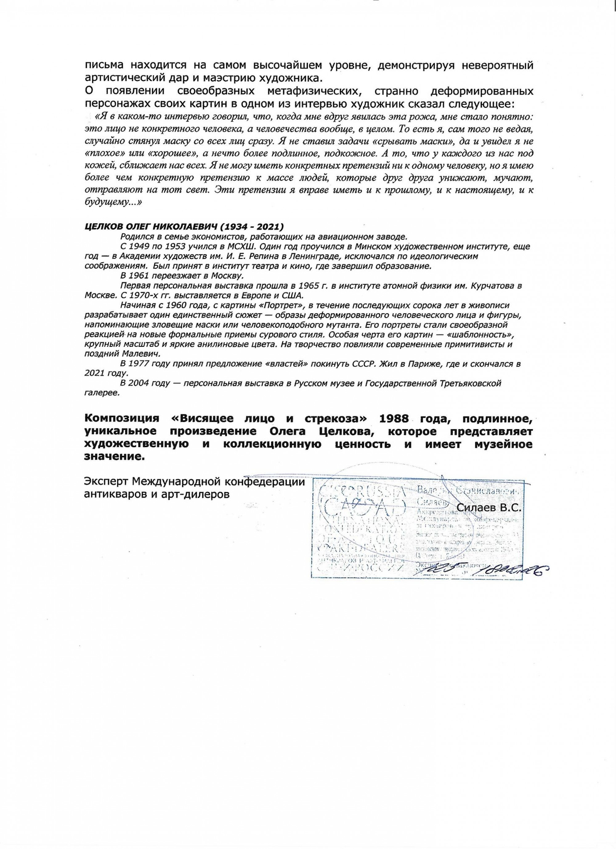 Статья: «Художник Олег Целков. Рекомендации, цены, инвестиционный аспект»