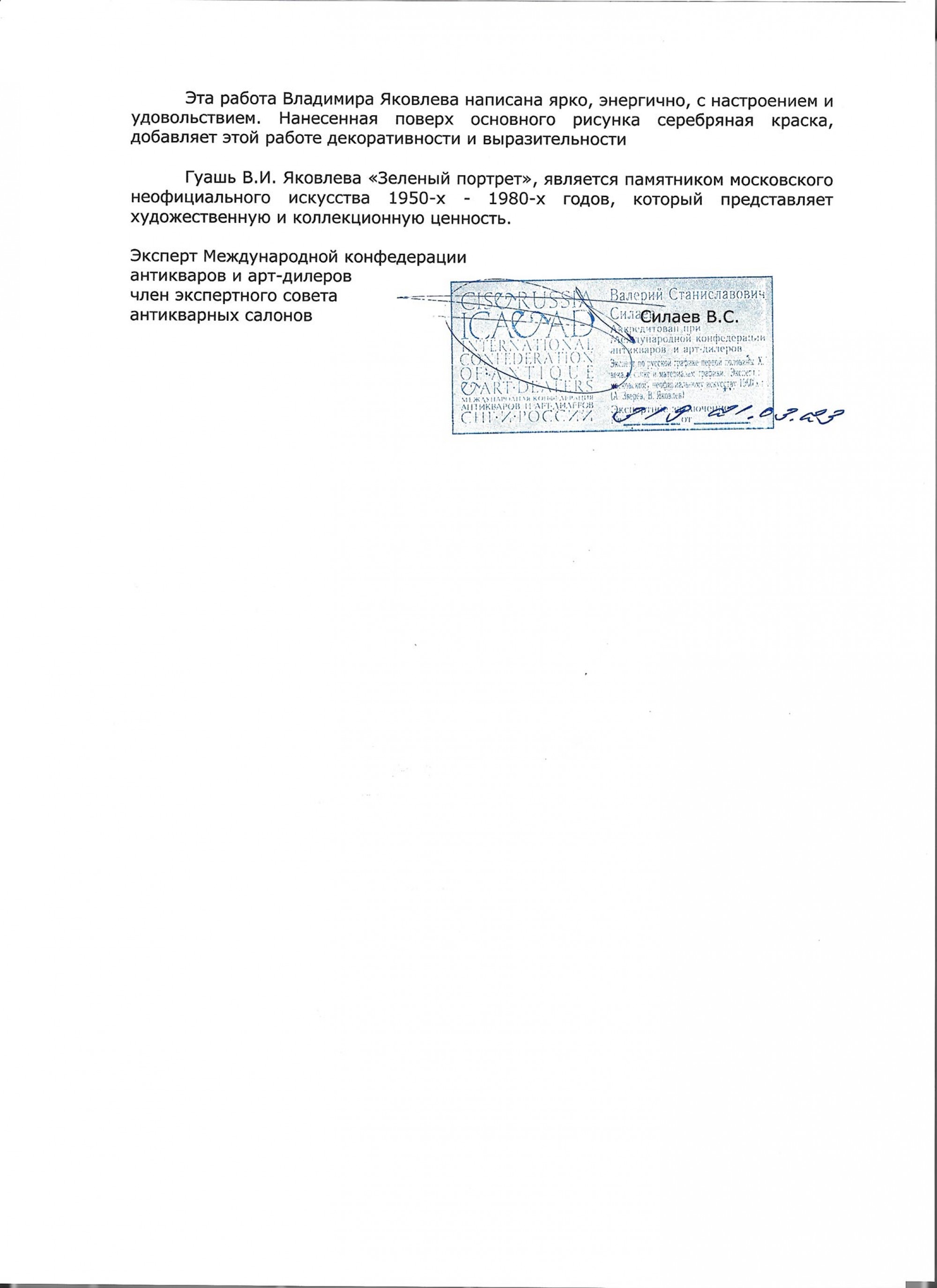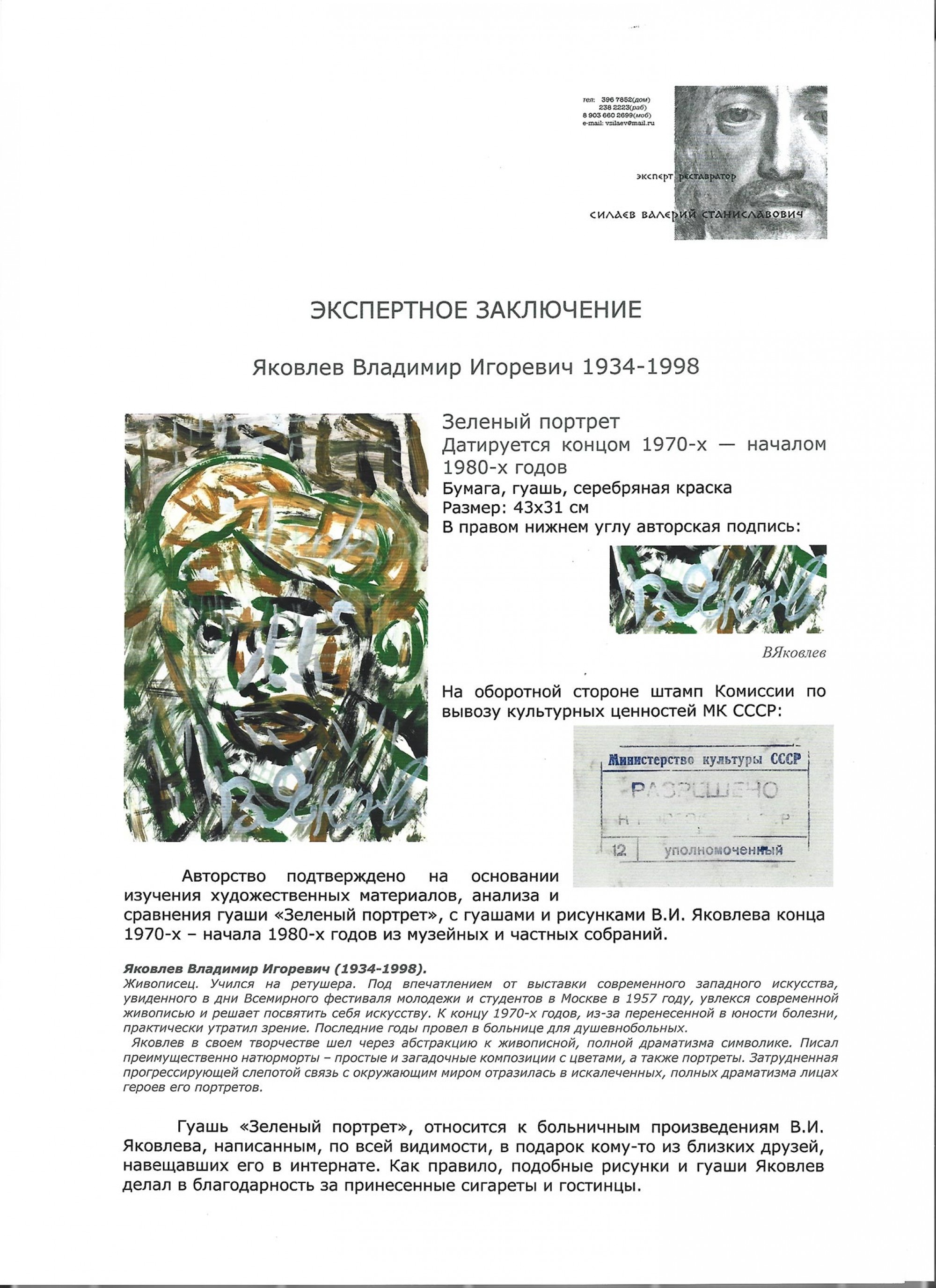 ЯКОВЛЕВ Владимир Игоревич (1934–1998) Зеленый портрет. Конец 1970‑х — начало 1980‑х ID лота: 113530