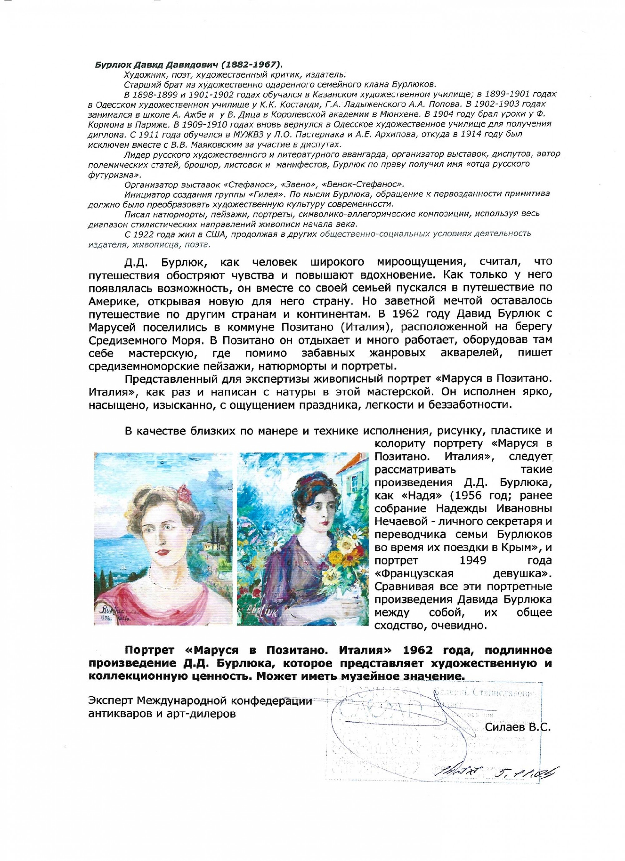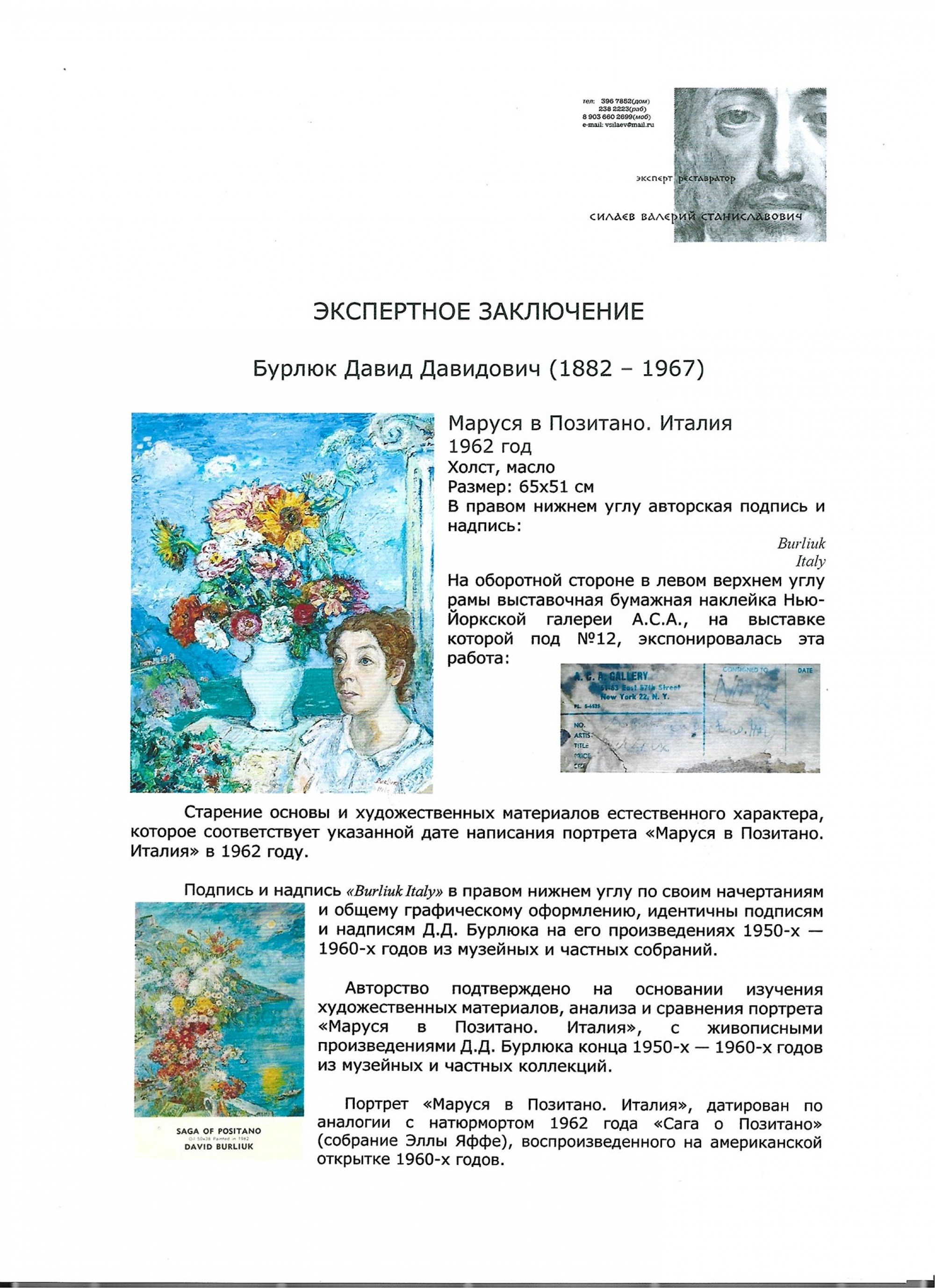 БУРЛЮК Давид Давидович (1882–1967) Маруся в Позитано. Италия. 1962 ID лота: 113539