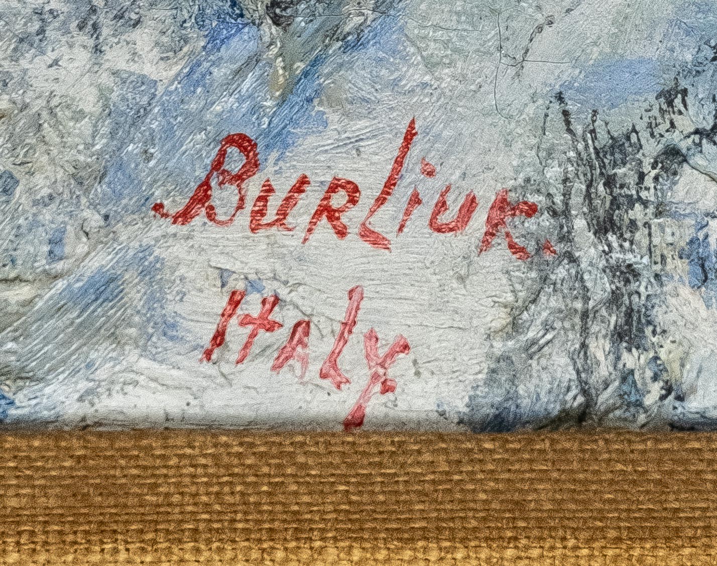 В правом нижнем углу подпись и надпись: Burliuk / Italy