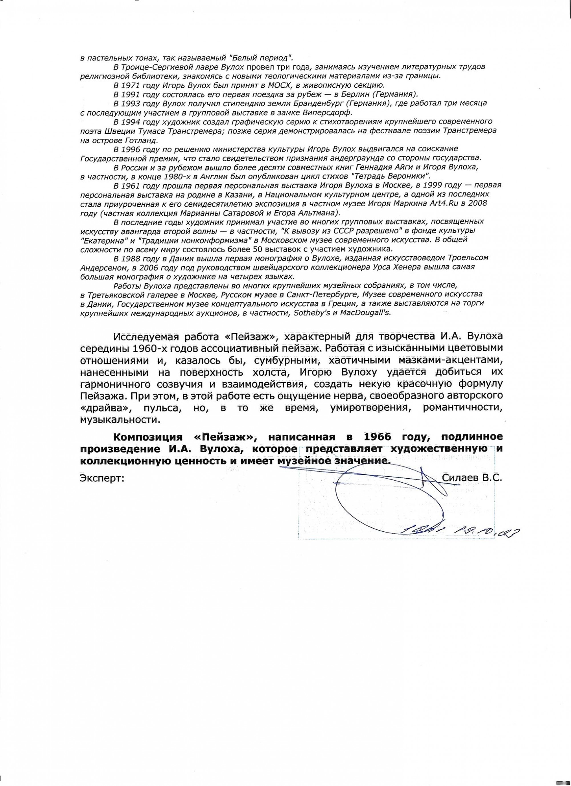 ВУЛОХ Игорь Александрович (1938–2012) Пейзаж. 1966 ID лота: 113542