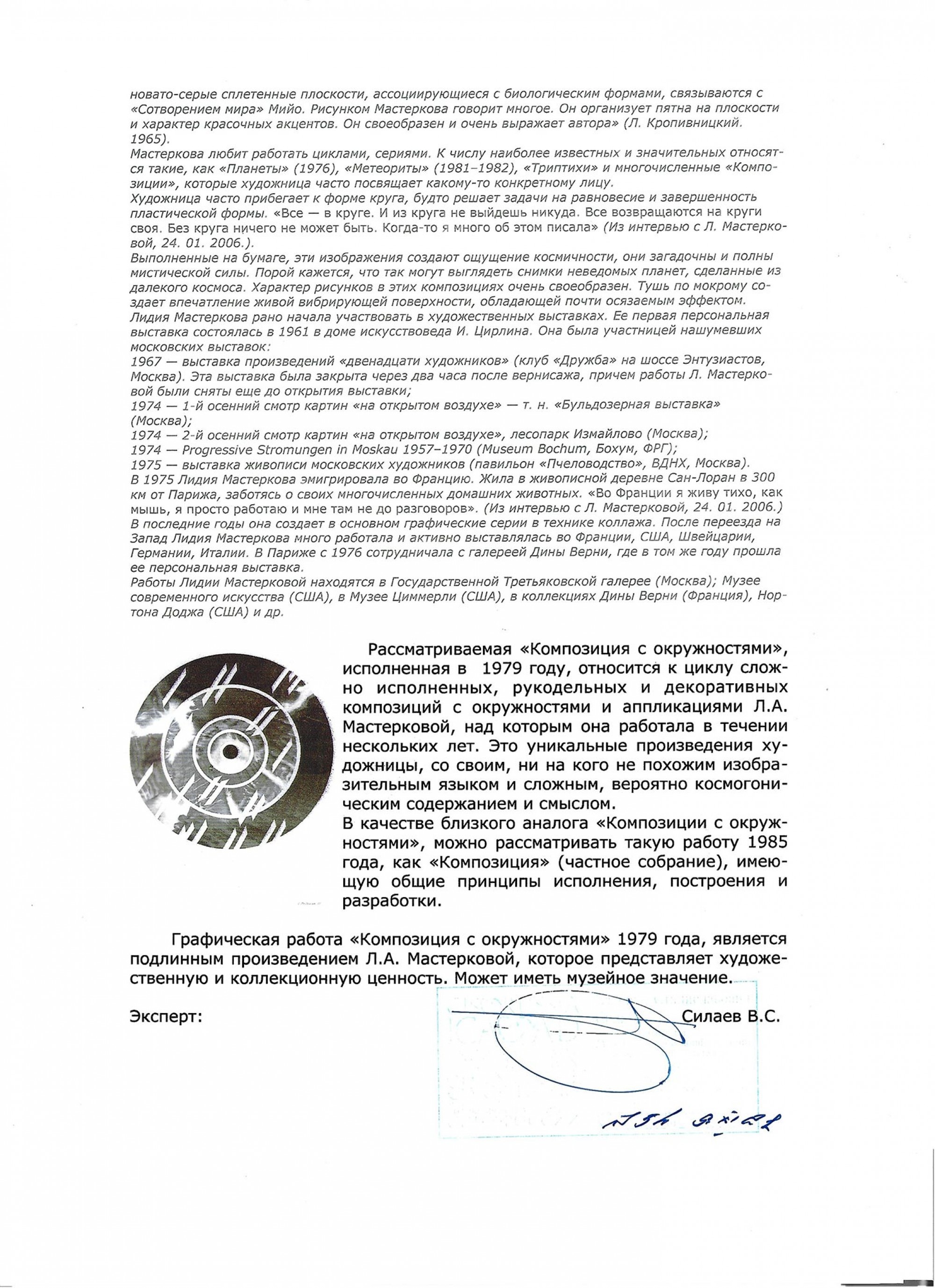 МАСТЕРКОВА Лидия Алексеевна (1927–2008) Композиция с окружностями. 1979 ID лота: 113545