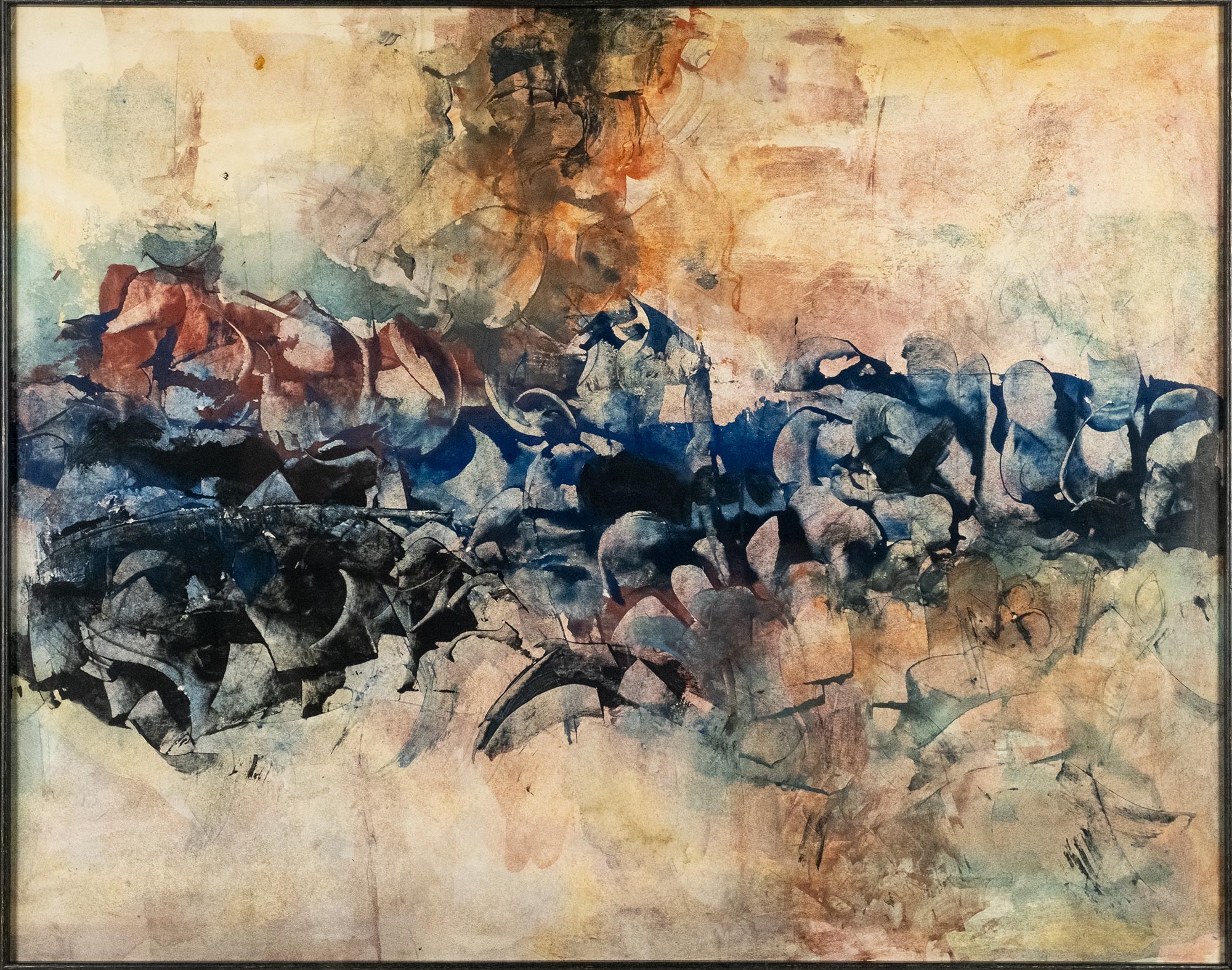 Работа оформлена в паспарту в раме под стеклом. Размер в раме: 64 × 75