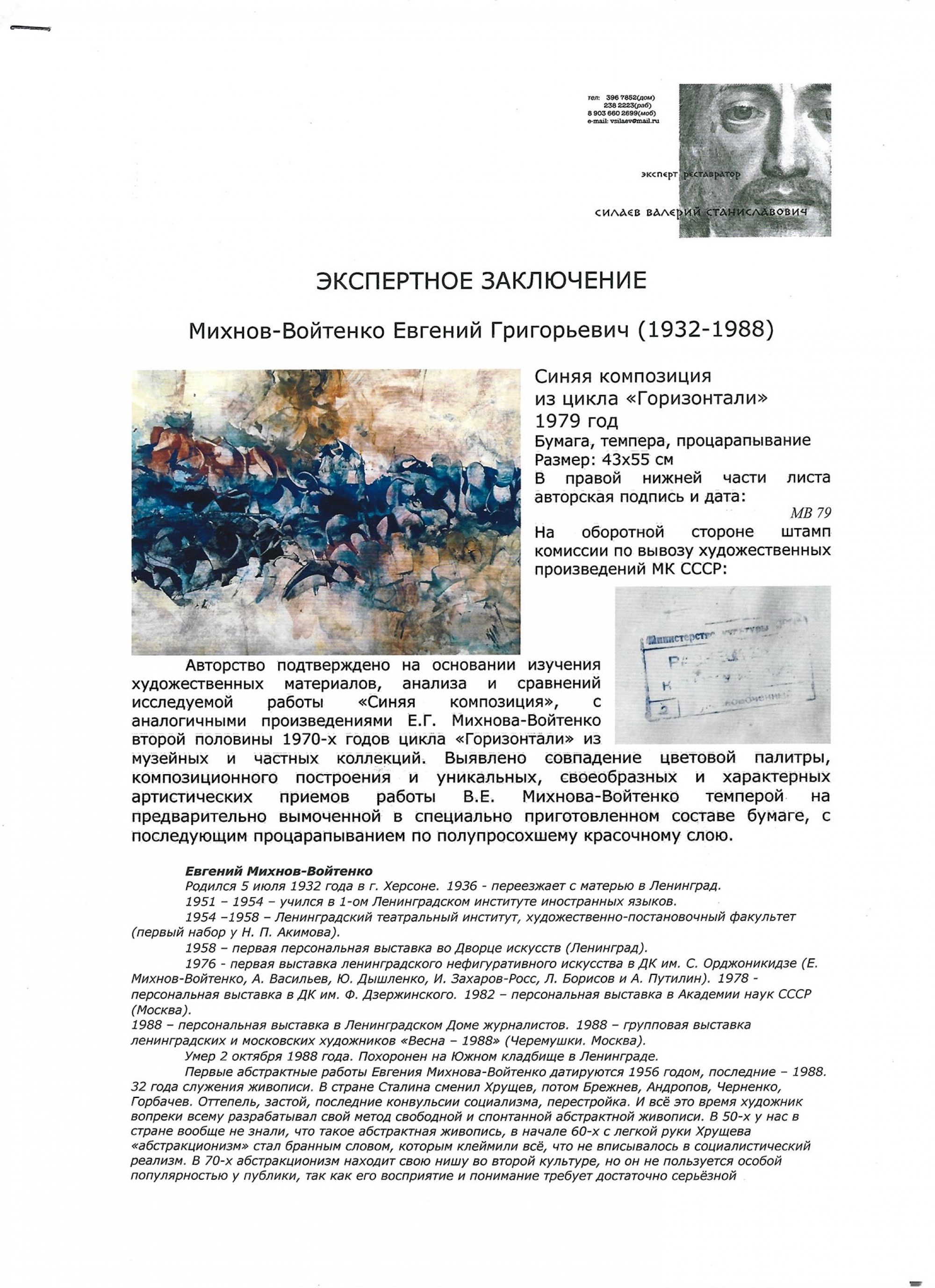 МИХНОВ‑ВОЙТЕНКО Евгений Григорьевич (1932–1988) Синяя композиция из цикла «Горизонтали». 1979