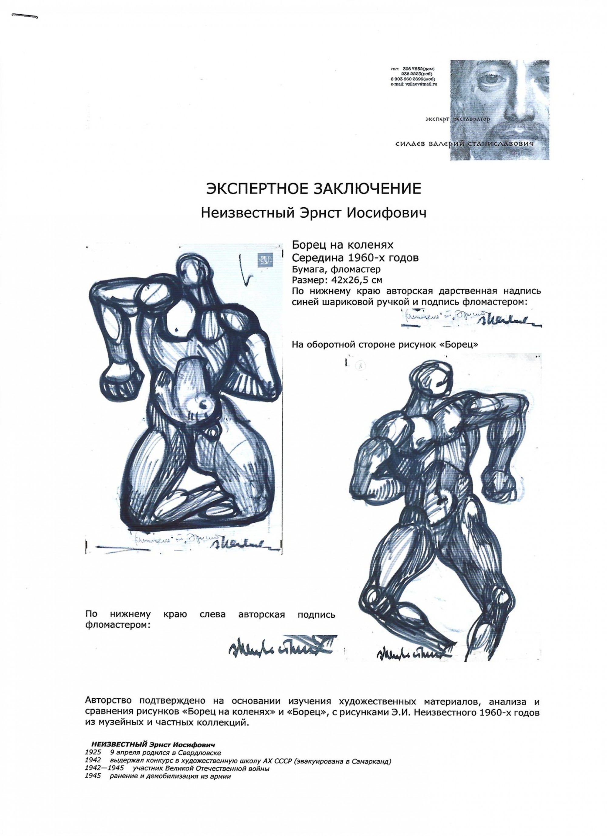 На обороте — рисунок «Борец» с подписью по нижнему краю: ЭНеизвестный