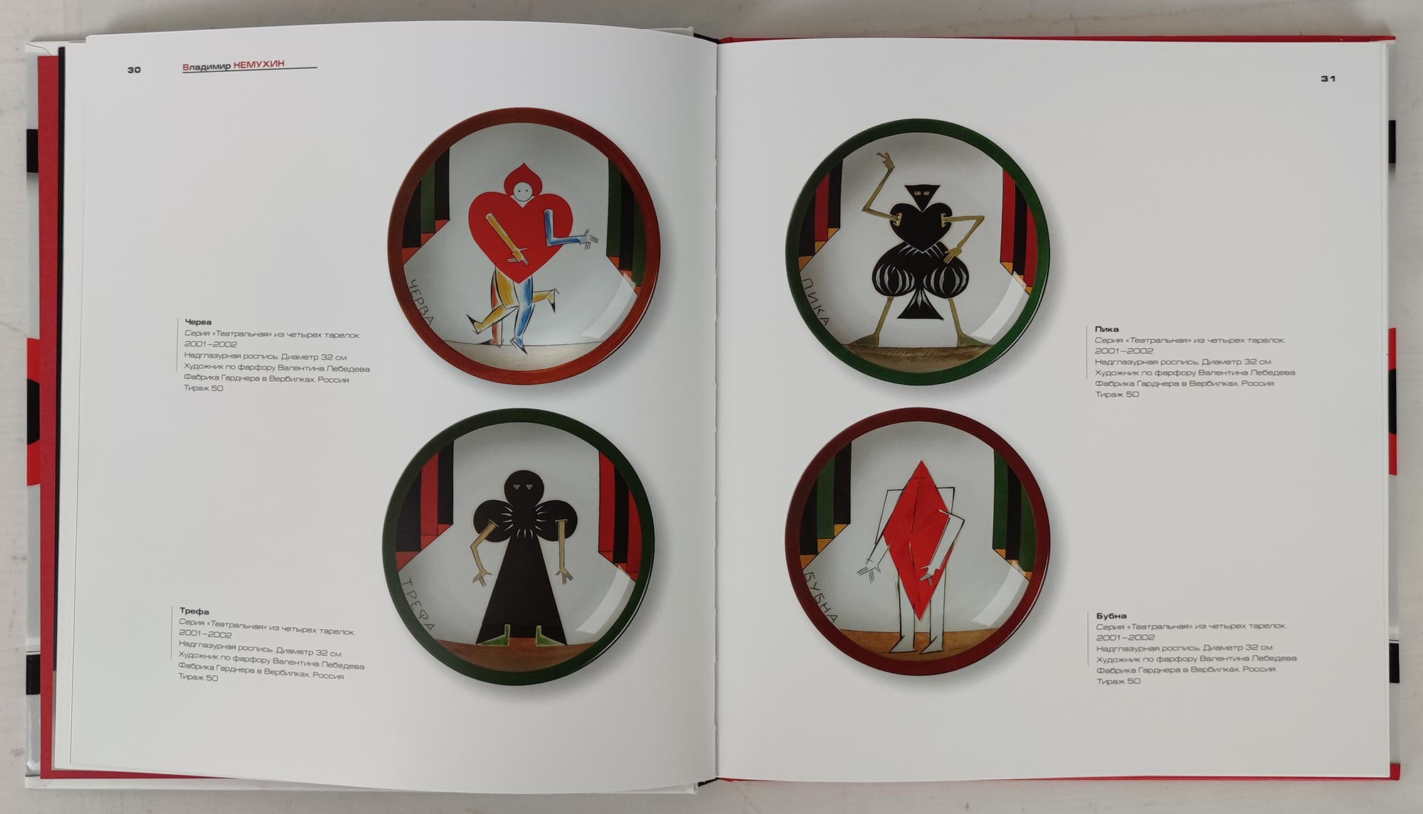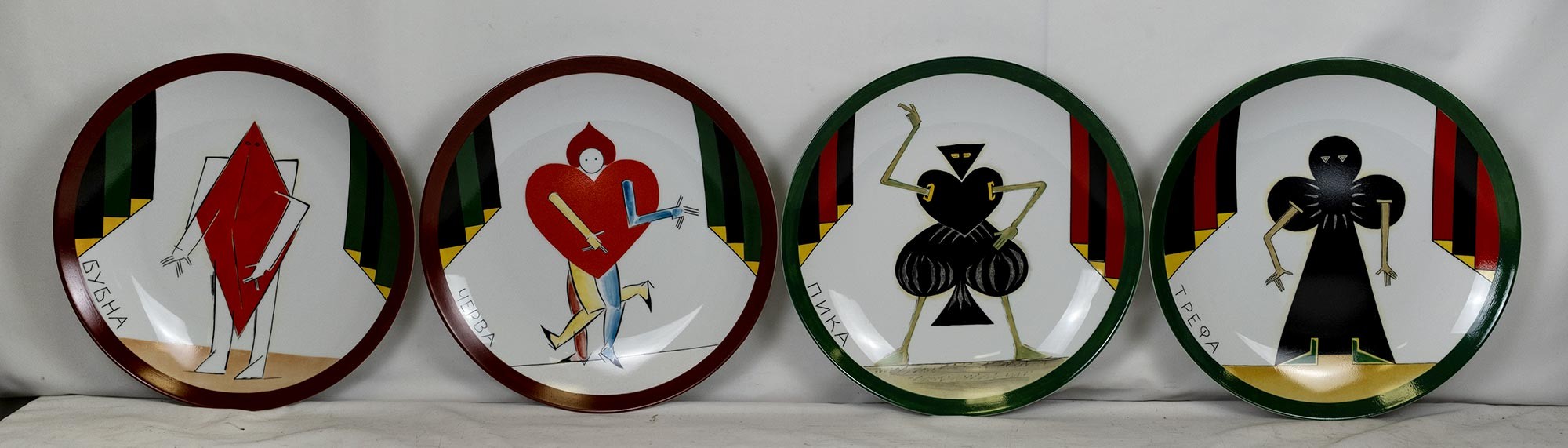 НЕМУХИН Владимир Николаевич (1925–2016) Серия «Театральная» из четырех тарелок. Черва, Трефа, Пика, Бубна. 2001–2002