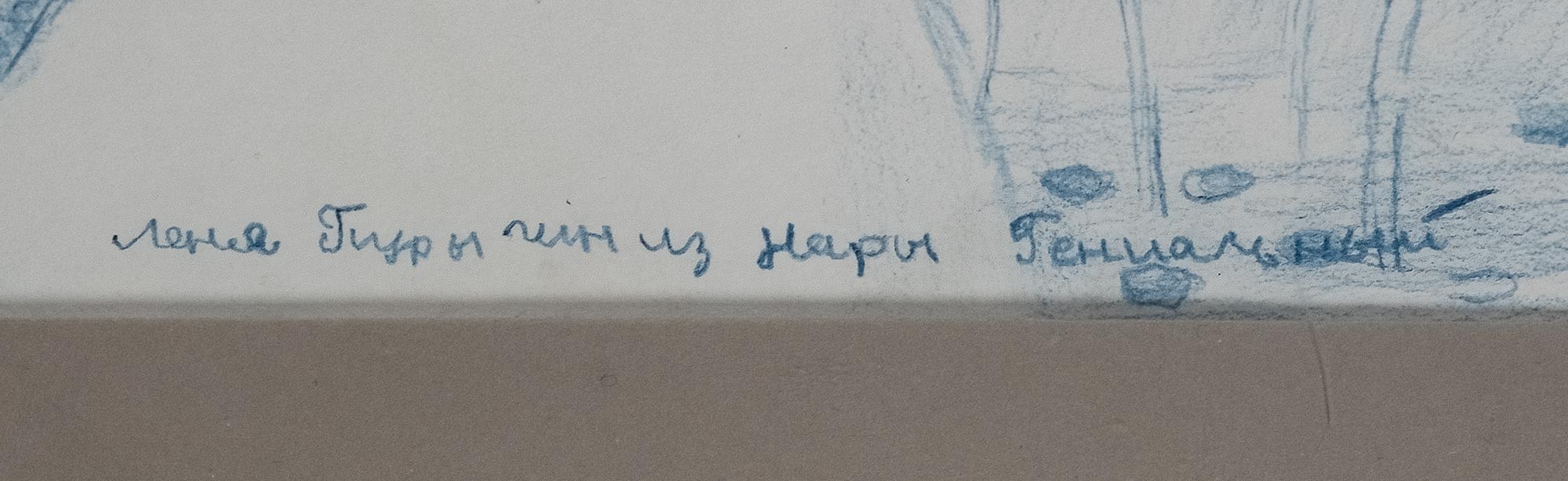 В правом нижнем углу подпись: Леня Пурыгин из Нары Гениальный