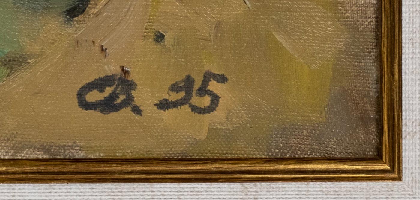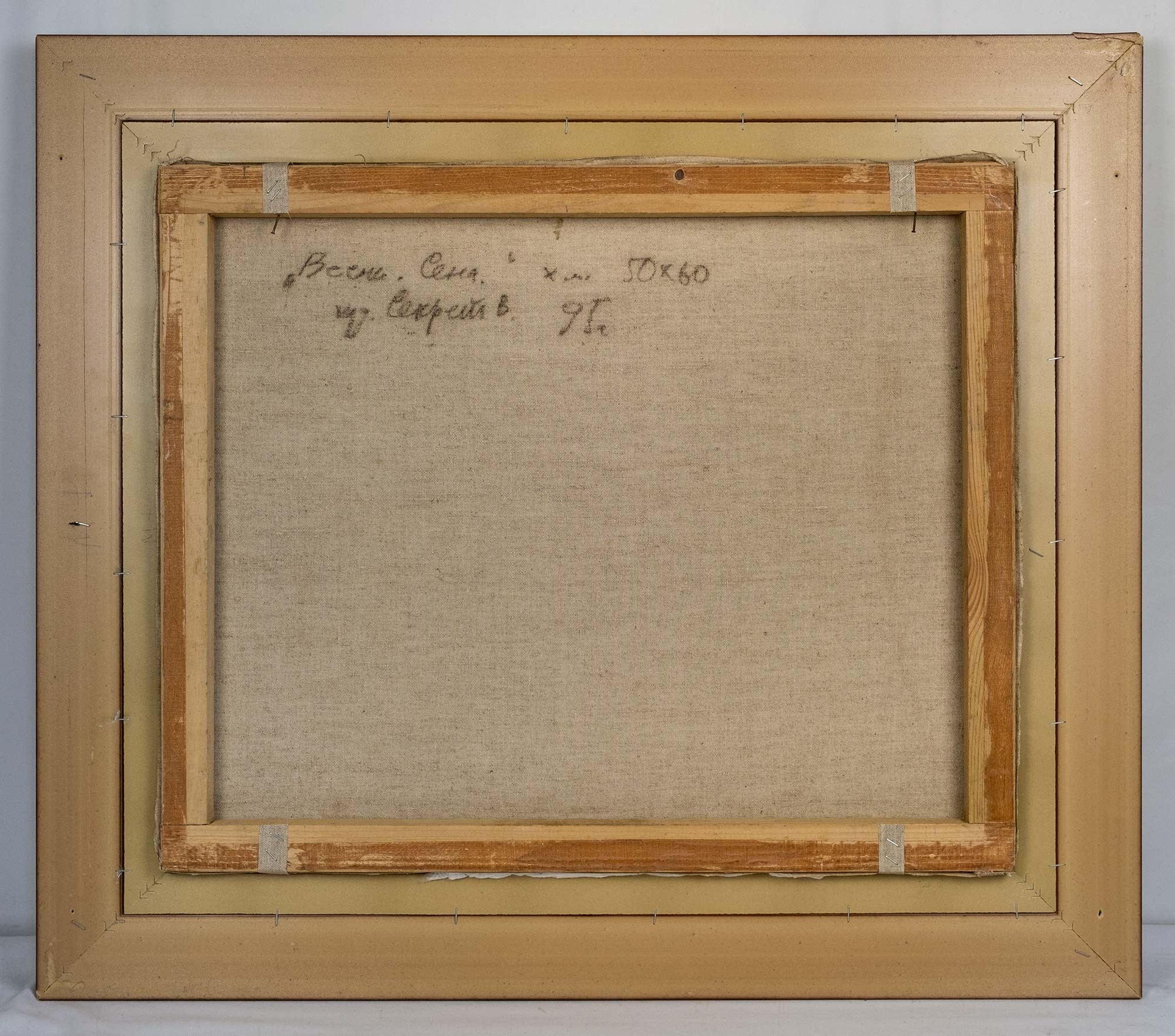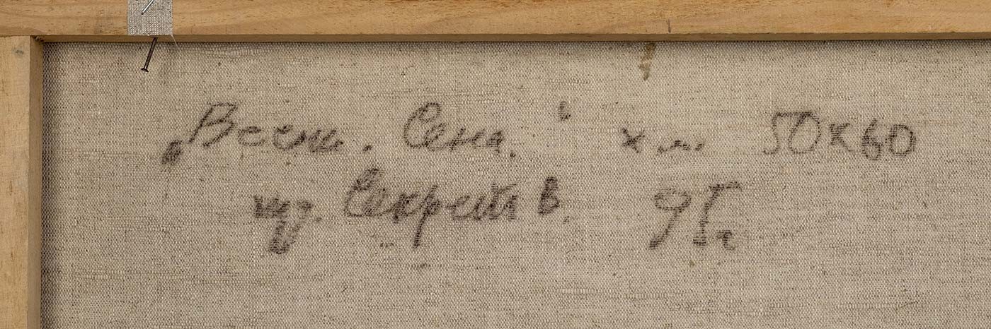 На обороте надпись: «Весна. Сена.» х. м. 50 × 60 / худ. Секрет В. 95 г.