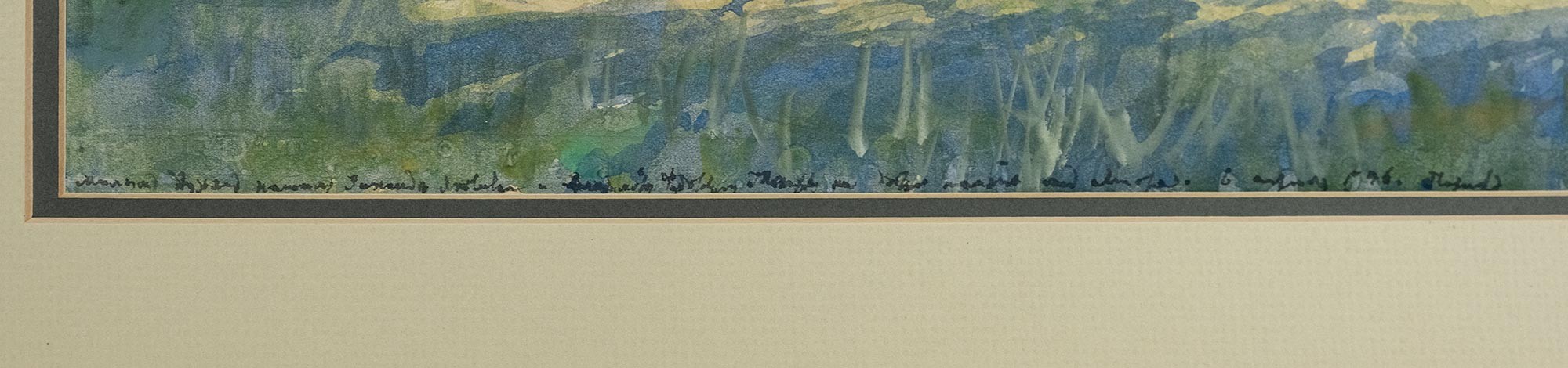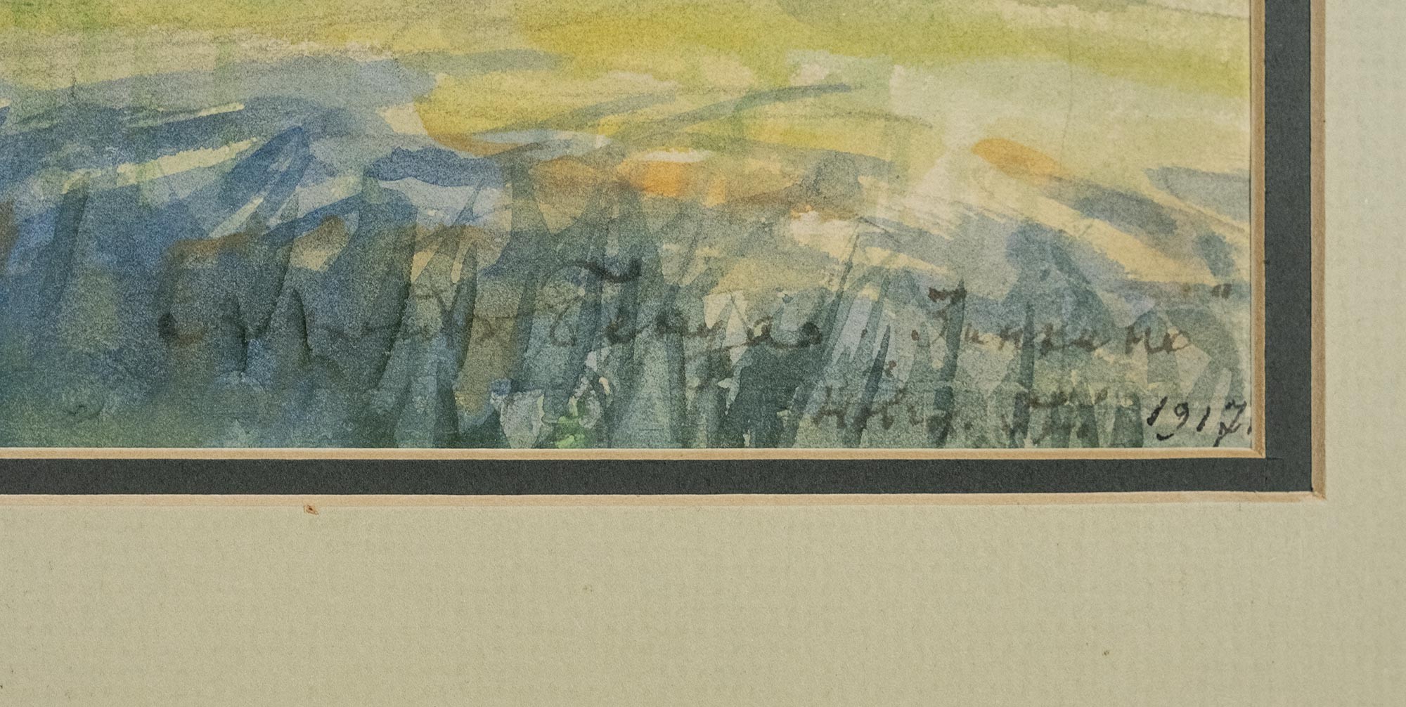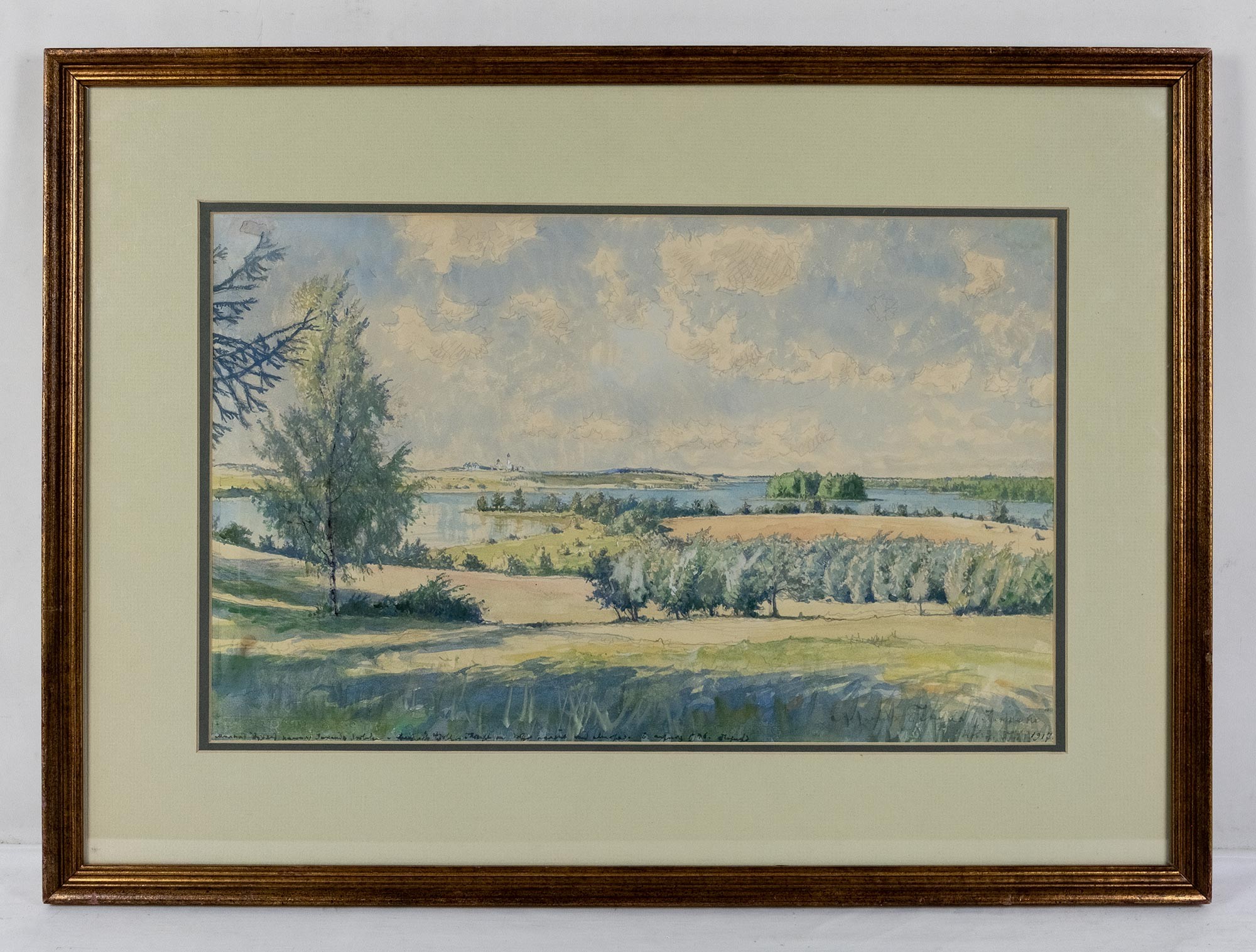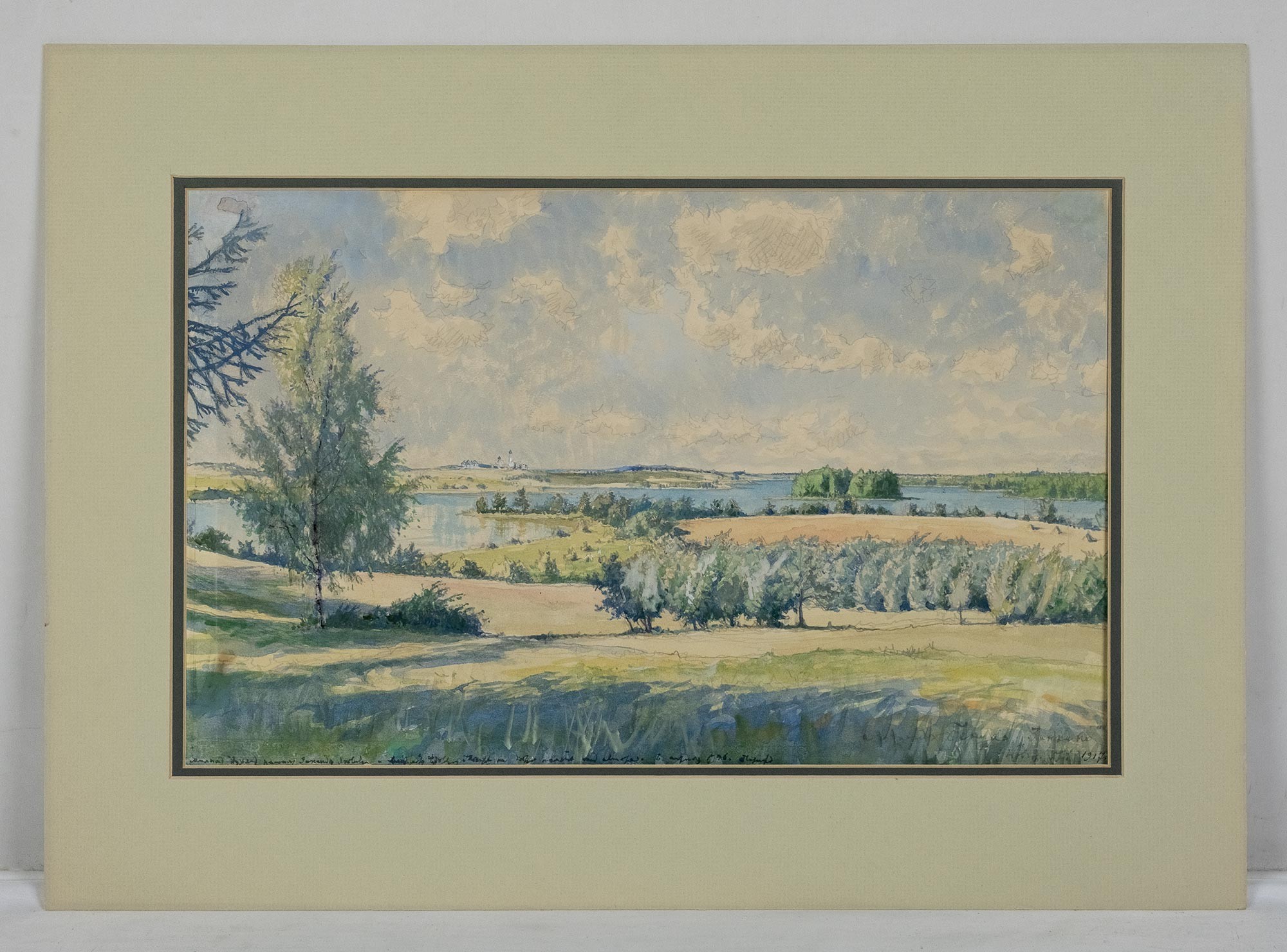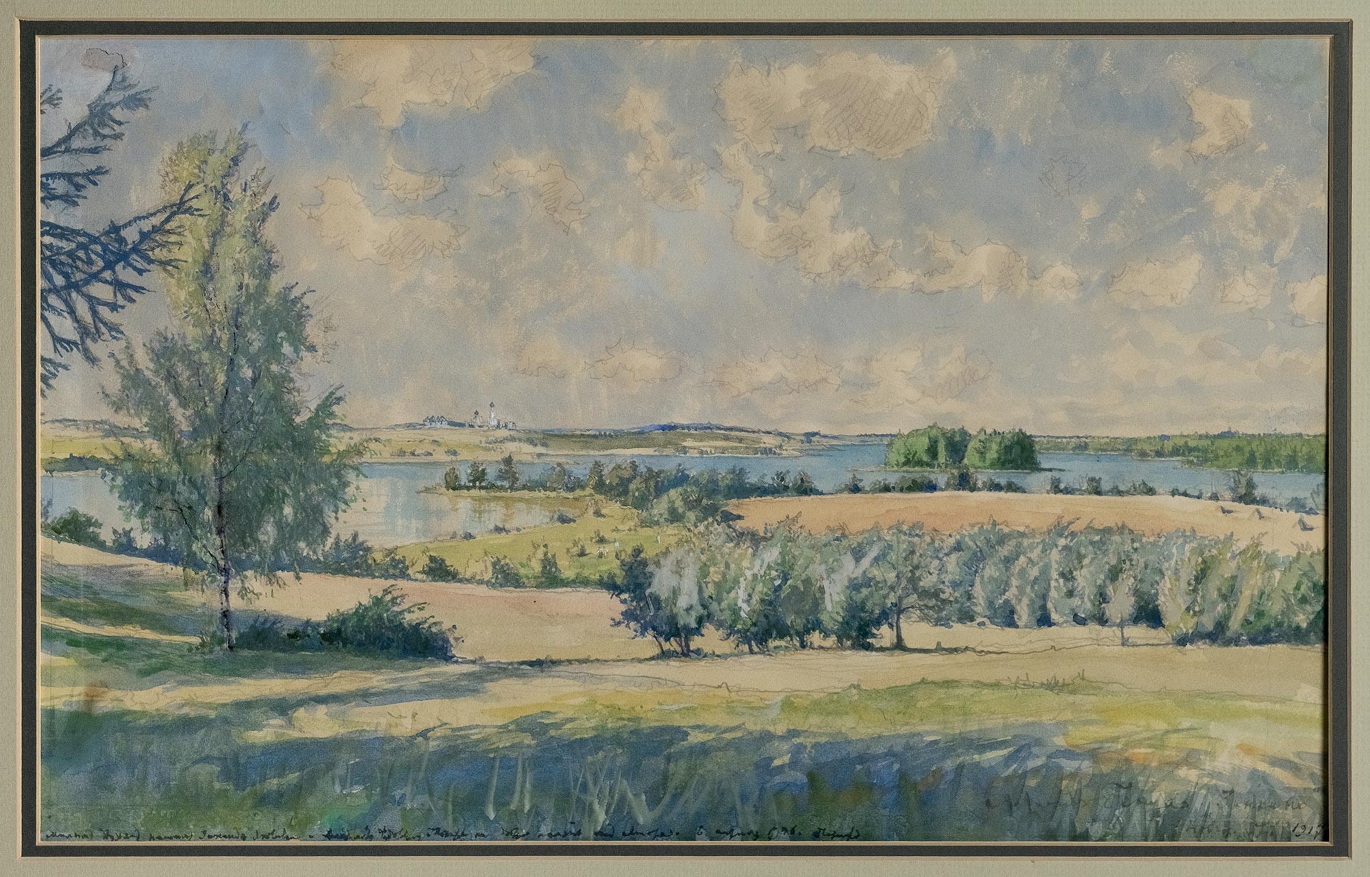 В правом нижнем углу авторская подпись, надпись и дата: Александр Бенуа «Зинкино» / Новгор. Губ. 1917.