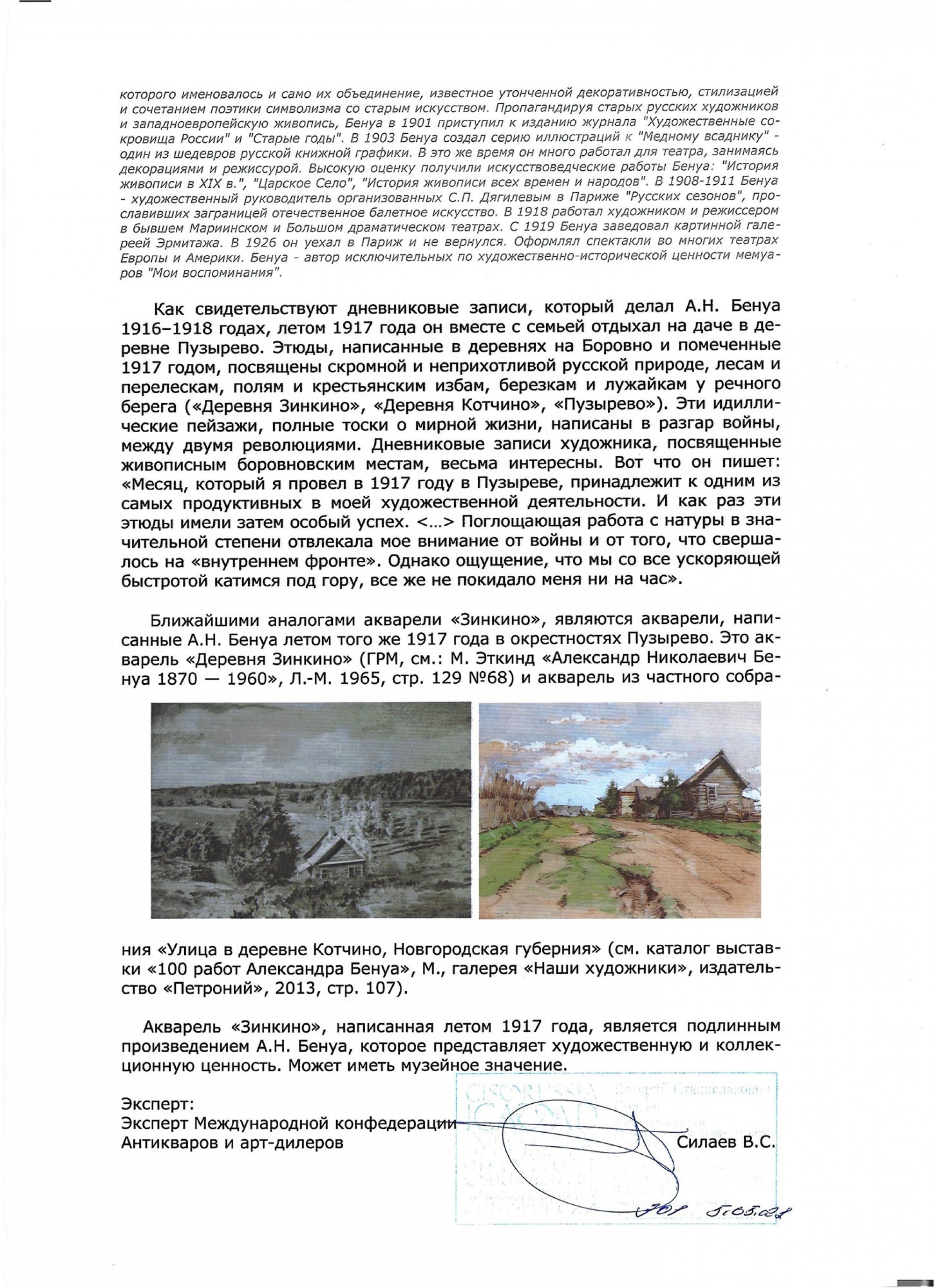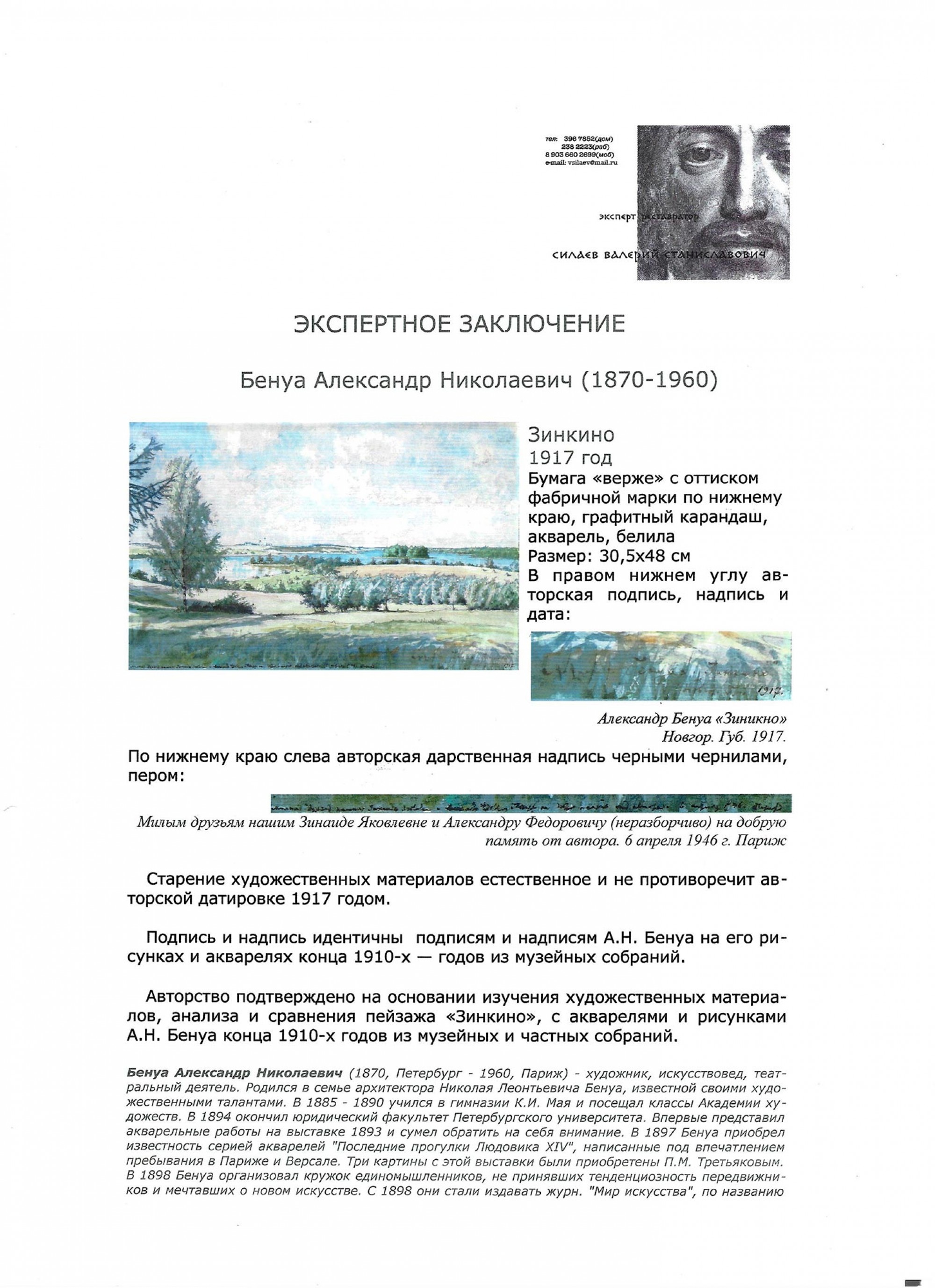 БЕНУА Александр Николаевич (1870–1960) Зинкино. 1917 ID лота: 113560