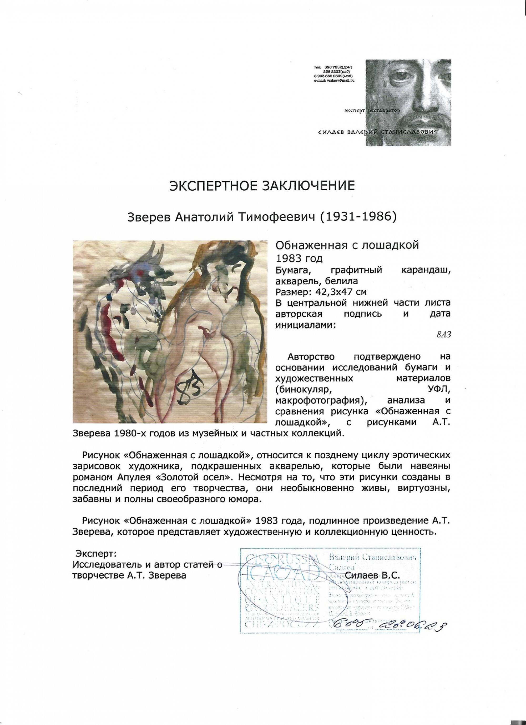 ЗВЕРЕВ Анатолий Тимофеевич (1931–1986) Обнаженная с лошадкой. 1983