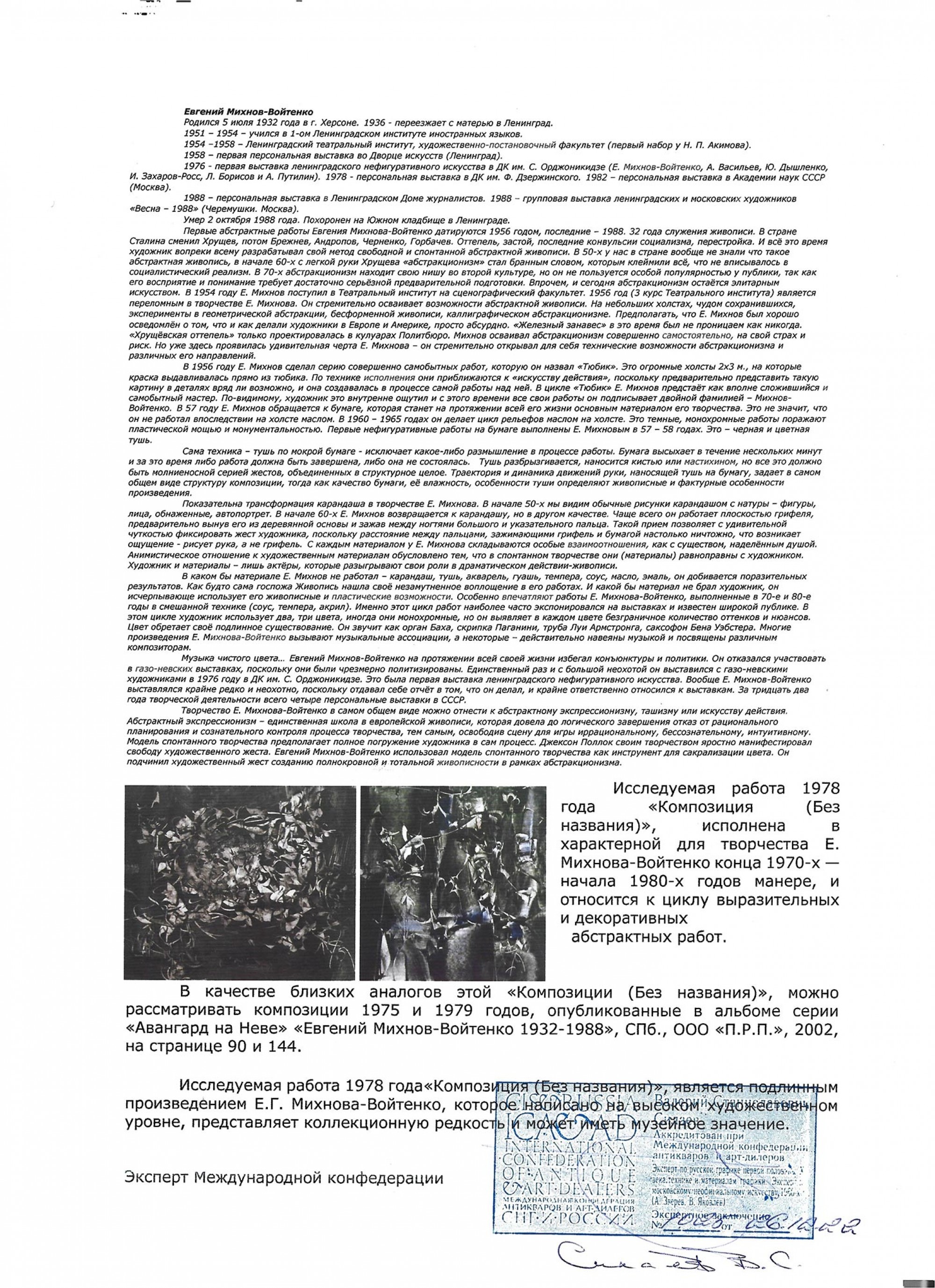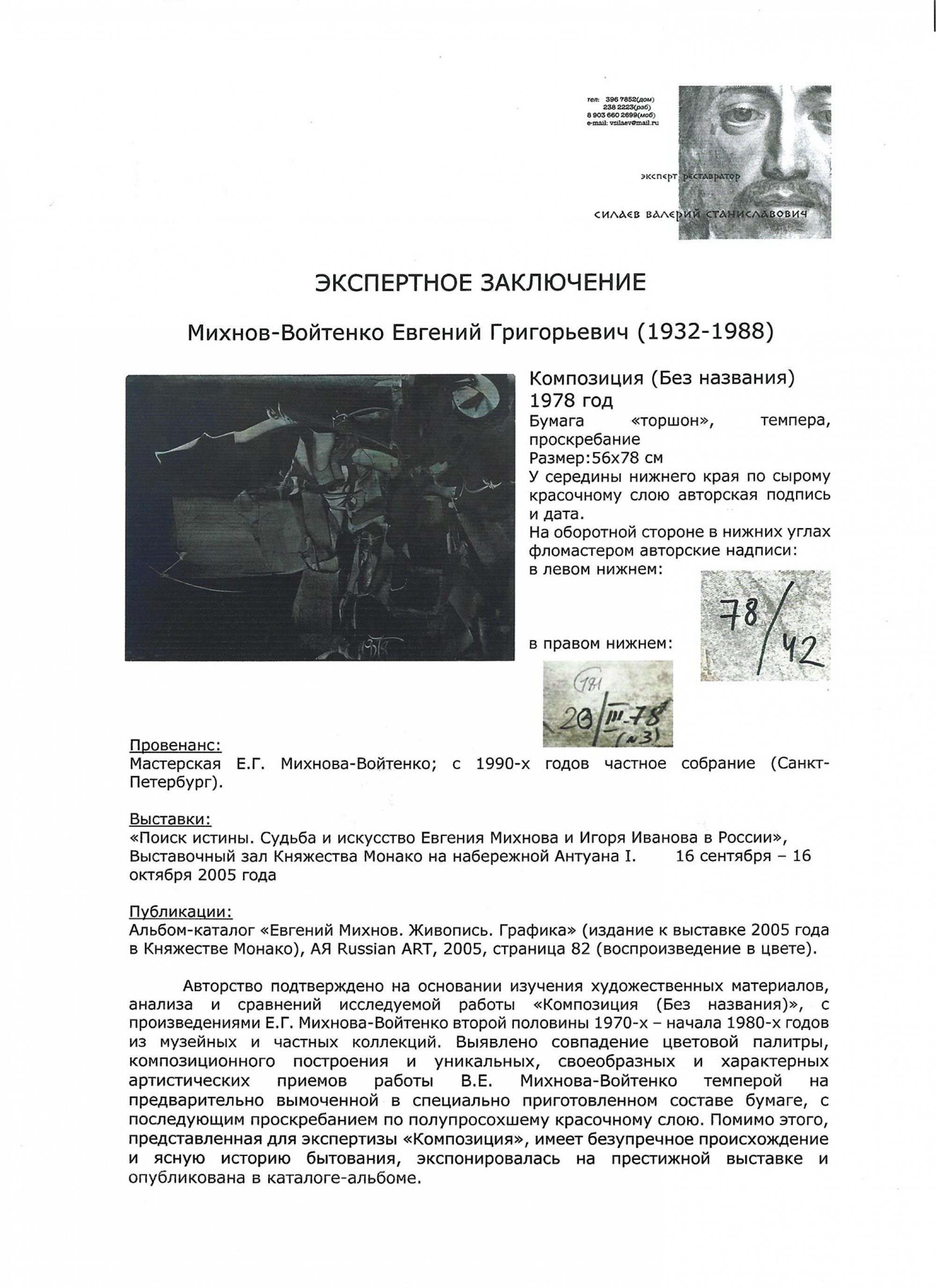 МИХНОВ‑ВОЙТЕНКО Евгений Григорьевич (1932–1988) Композиция (без названия). 1978 ID лота: 113568