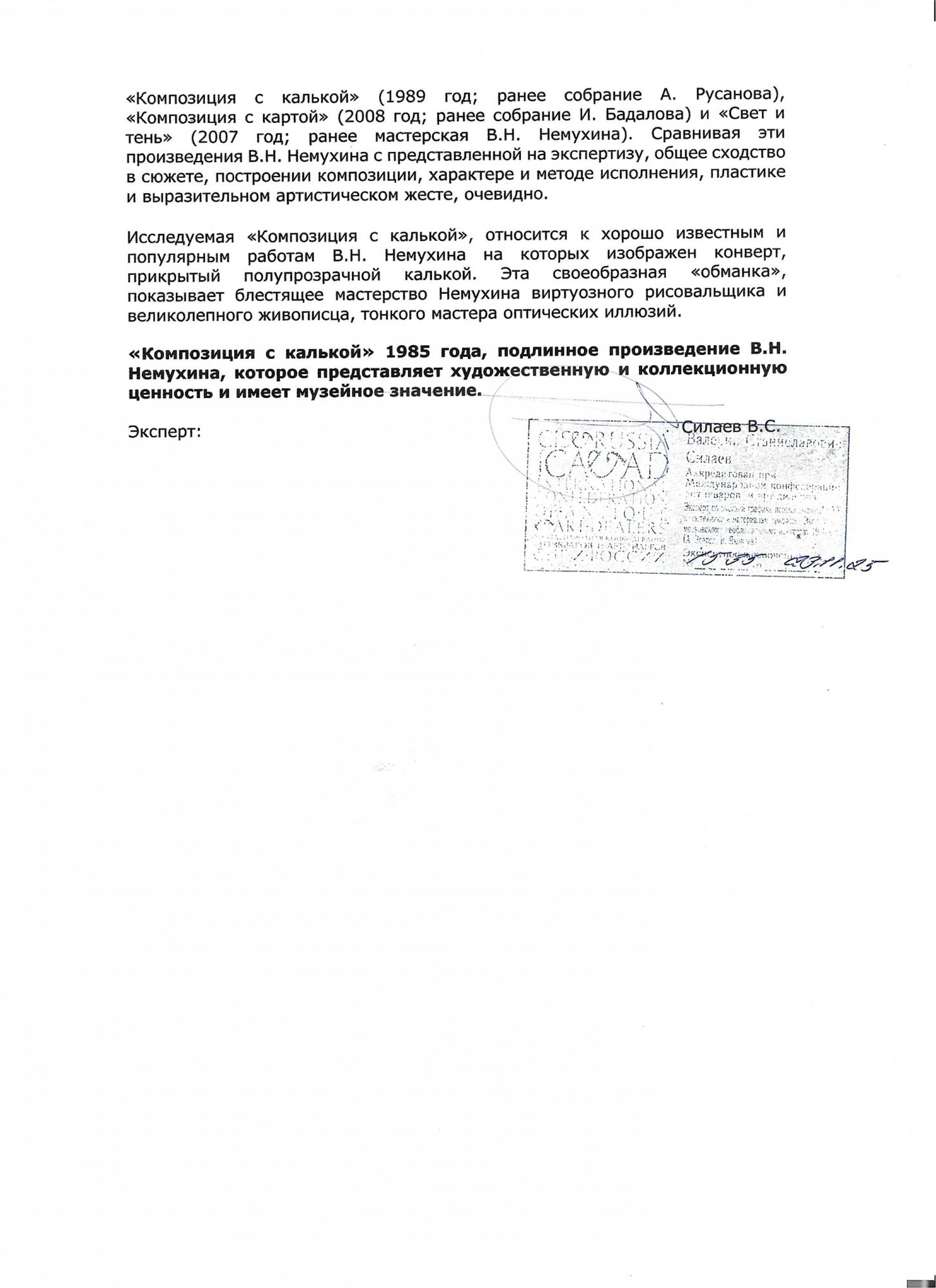 Экспертное заключение № 1535 от 23.11.25. Эксперт: В. С. Силаев