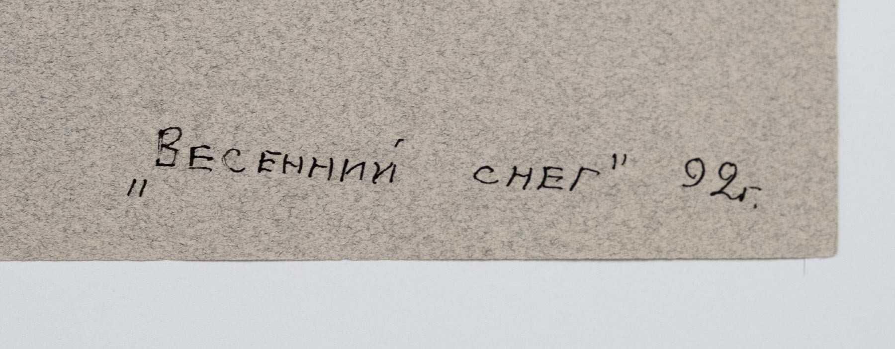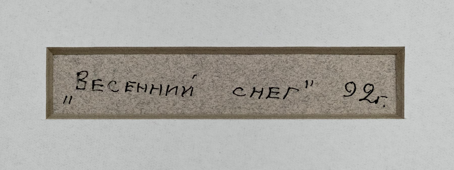 На обороте авторская надпись: Б. Свешников / «Весенний снег» 92 г.