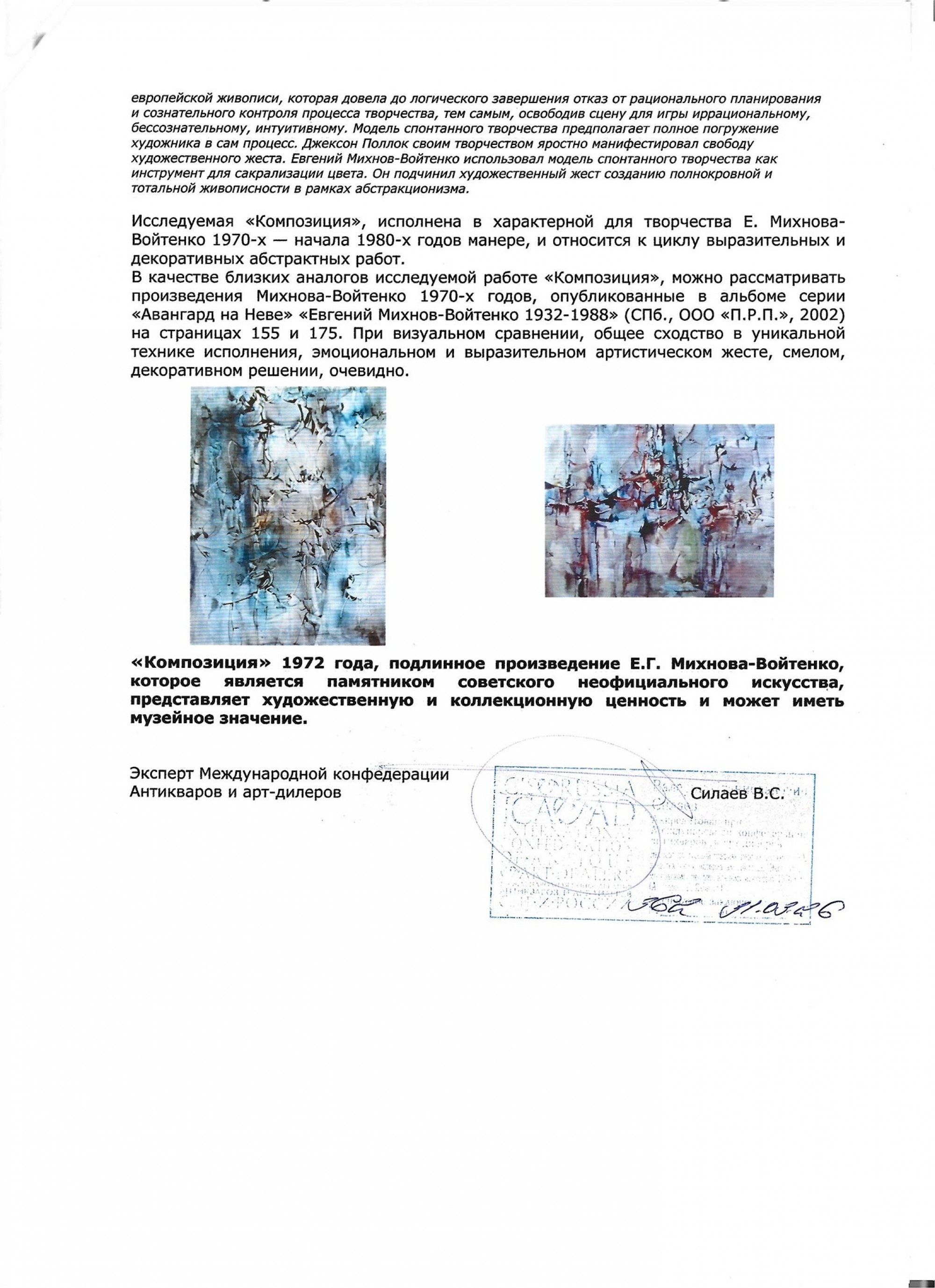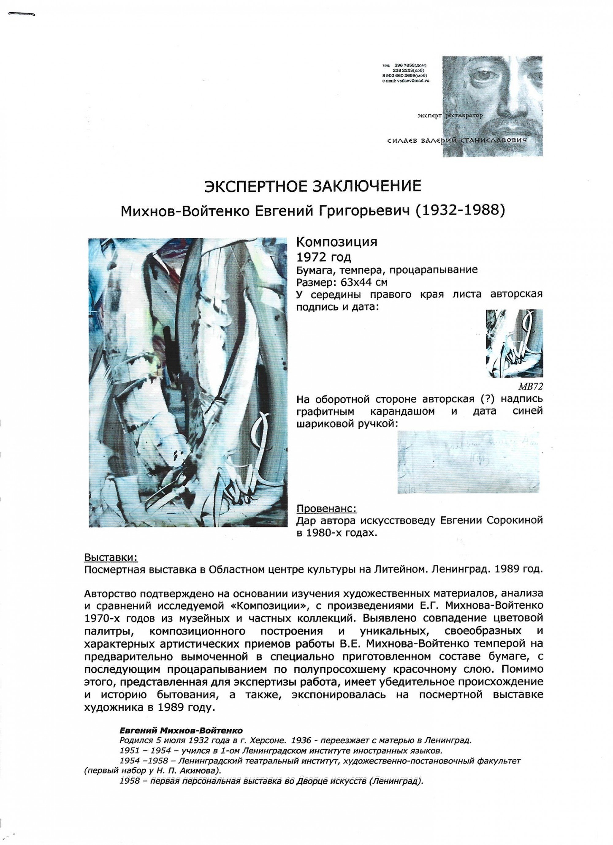 МИХНОВ‑ВОЙТЕНКО Евгений Григорьевич (1932–1988) Композиция. 1972 ID лота: 113592