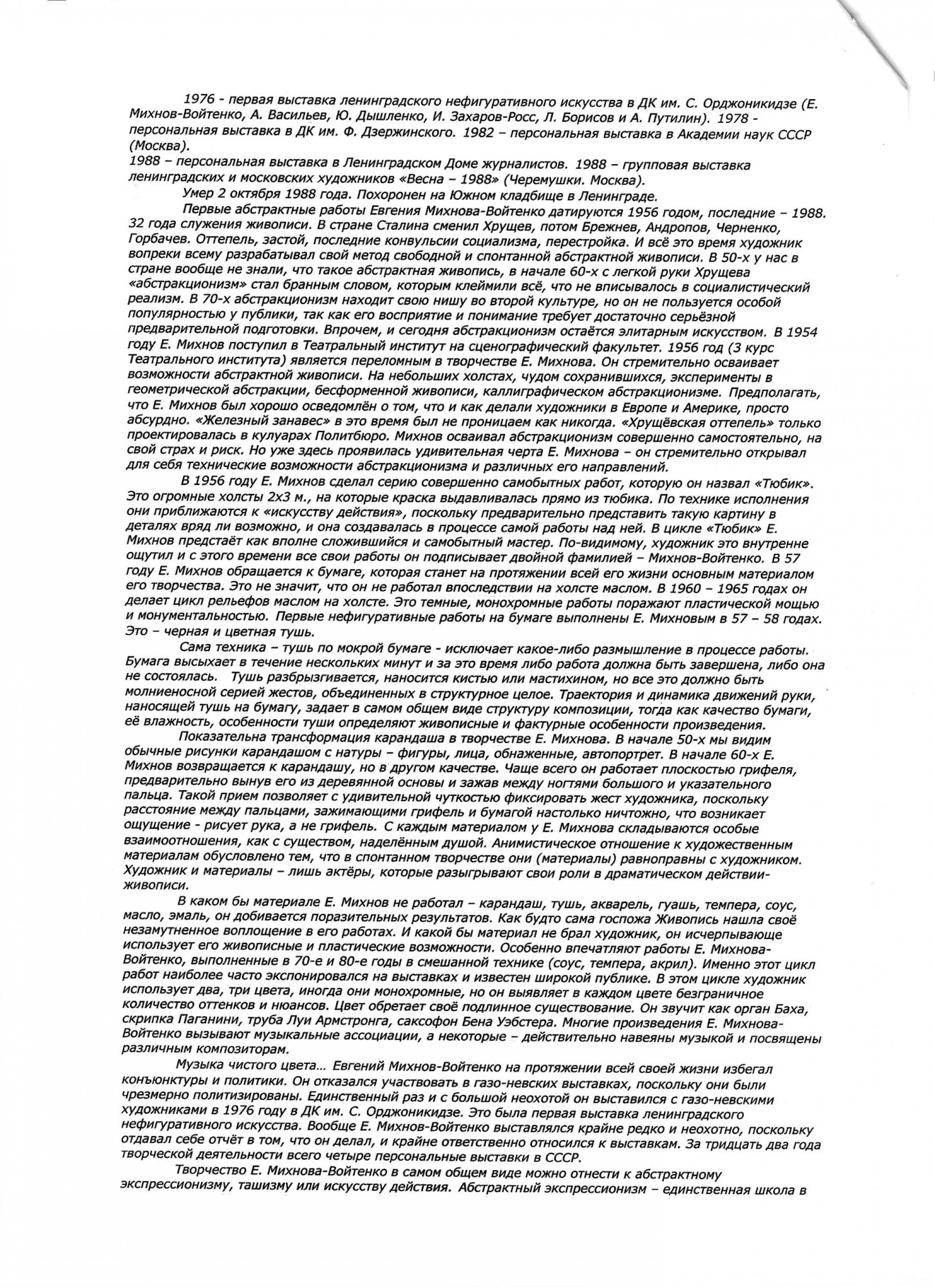 МИХНОВ‑ВОЙТЕНКО Евгений Григорьевич (1932–1988) Композиция. 1972