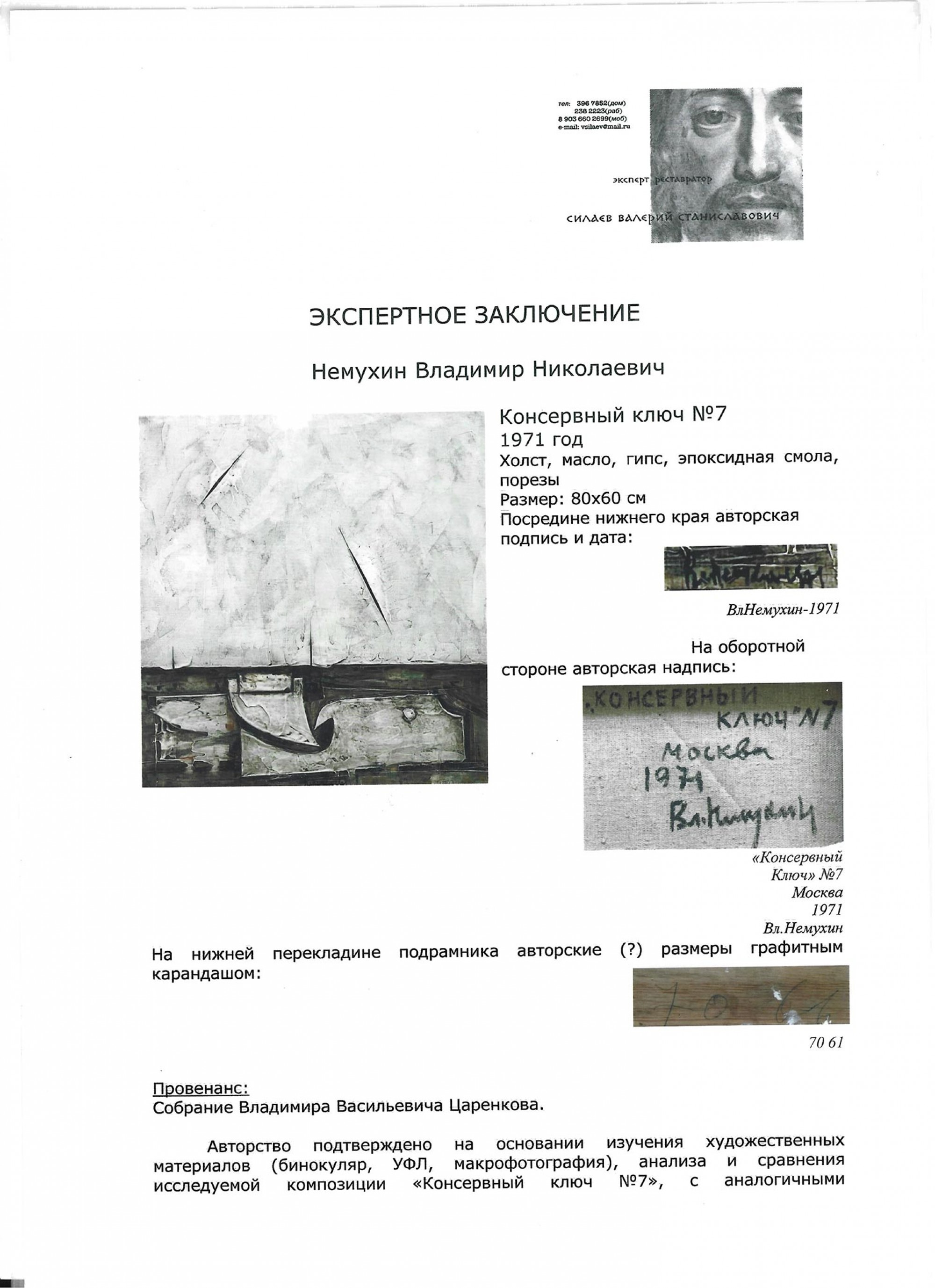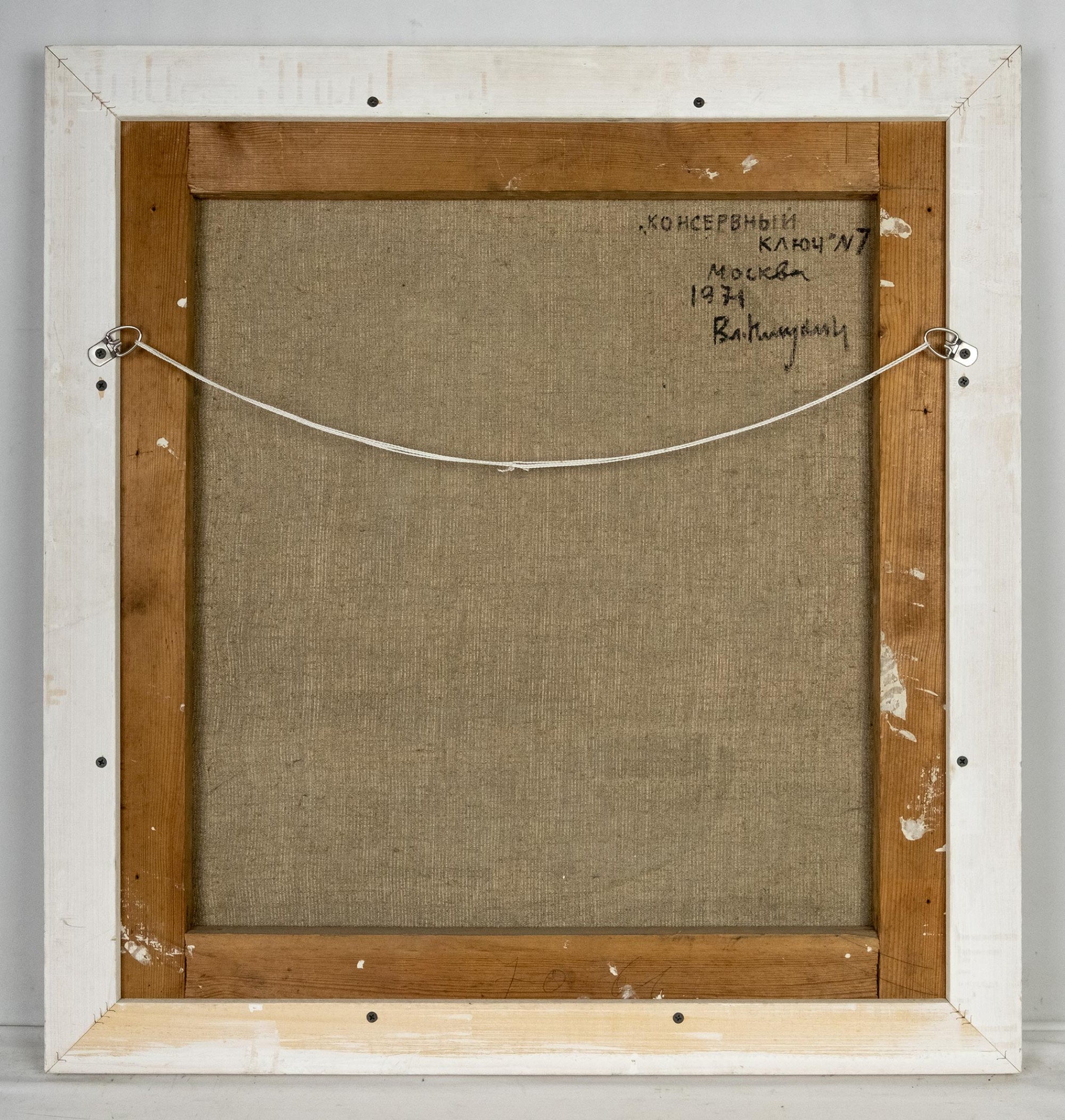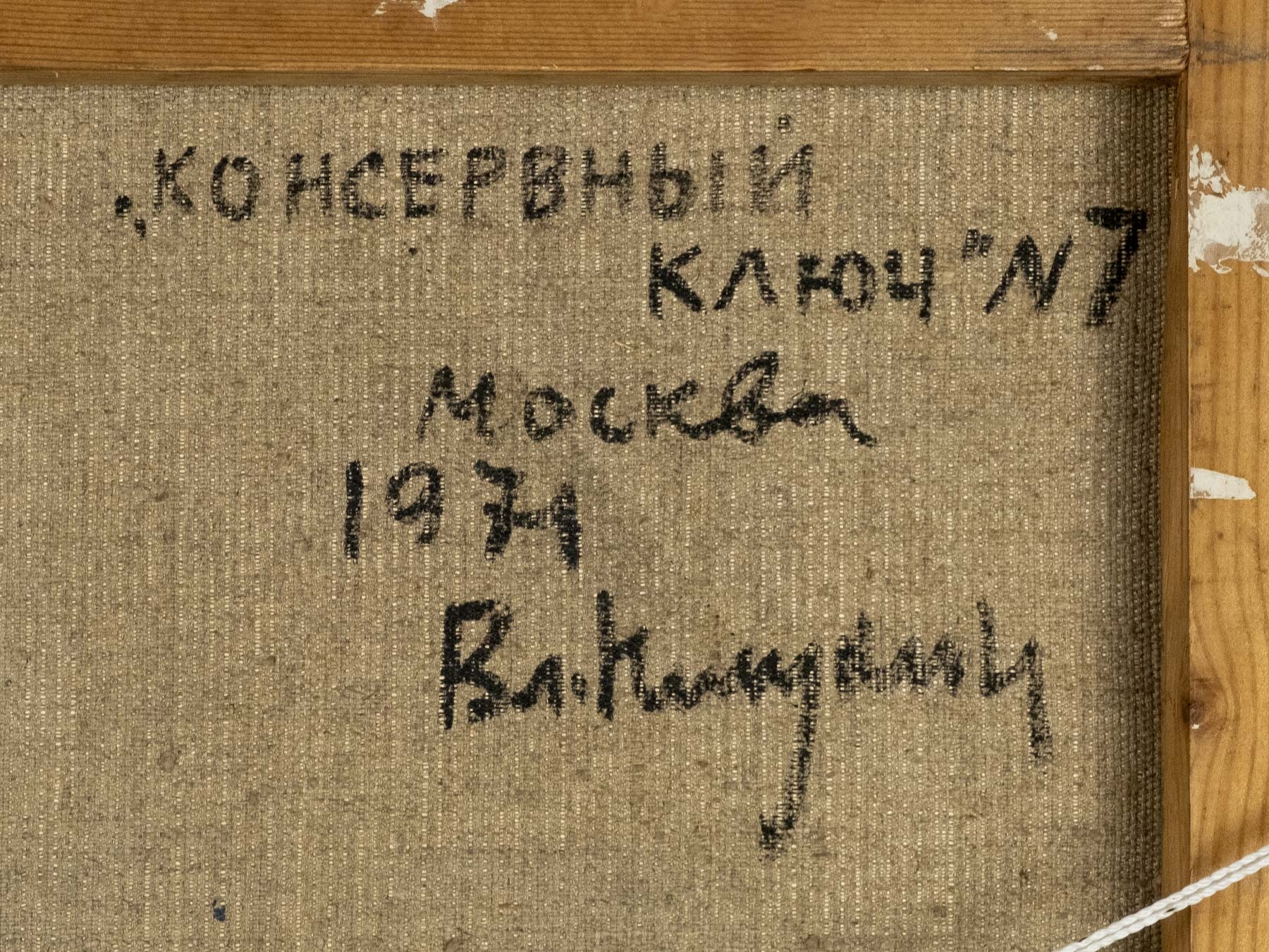 На обороте авторское название, дата и подпись: «Консервный ключ» № 7 / Москва / 1971 / Вл. Немухин