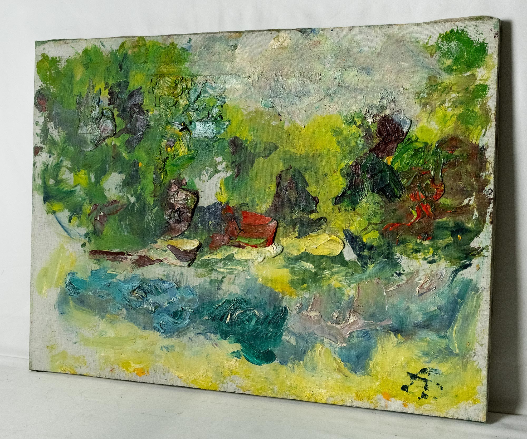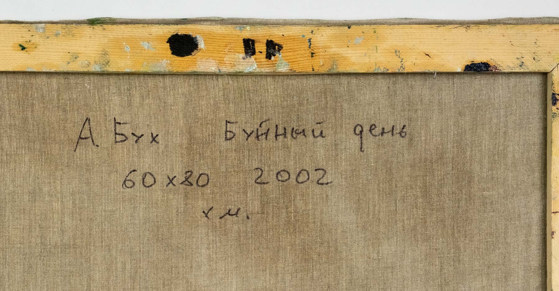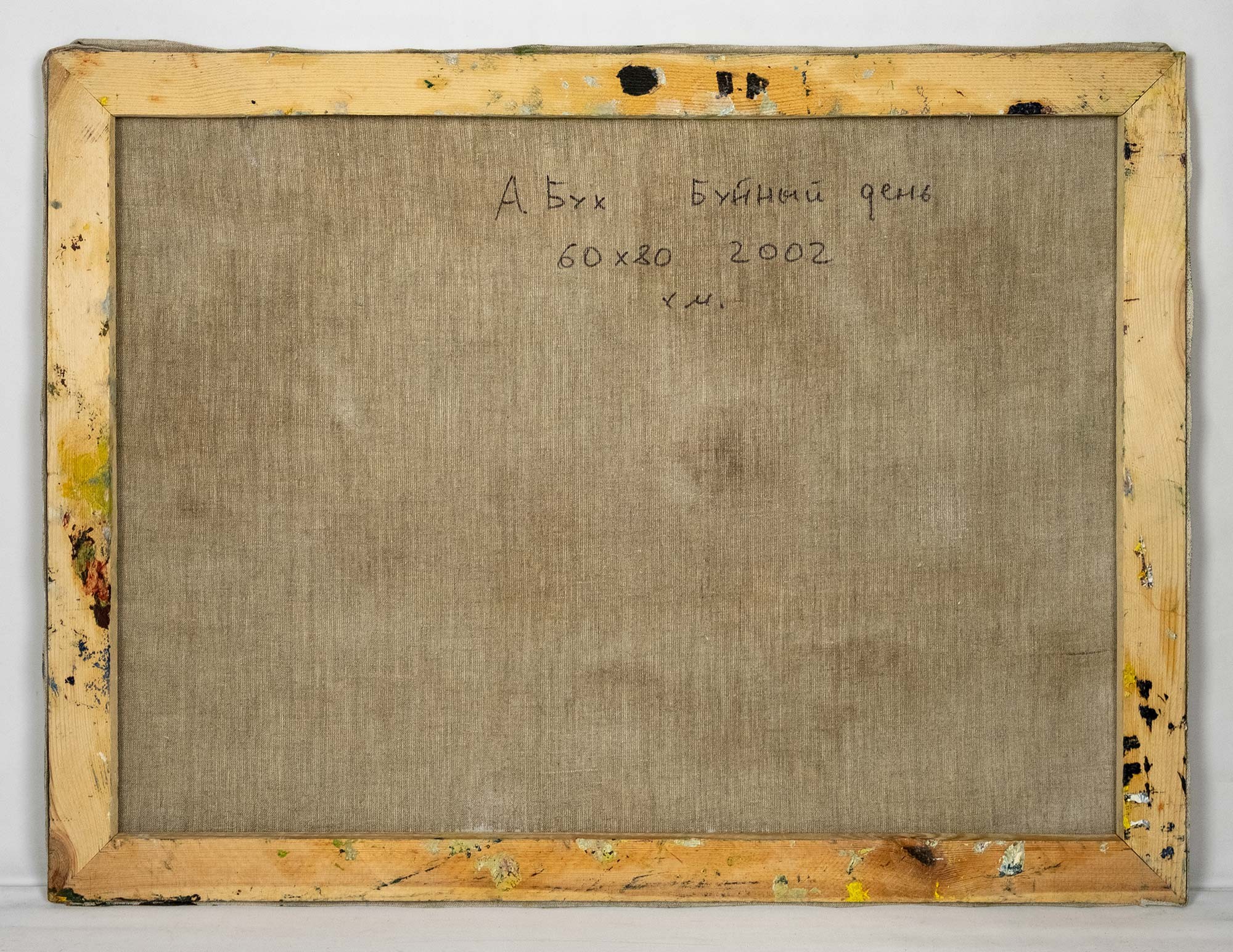 На обороте владельческая надпись: А. Бух Буйный день / 60 × 80 2002 / хм.