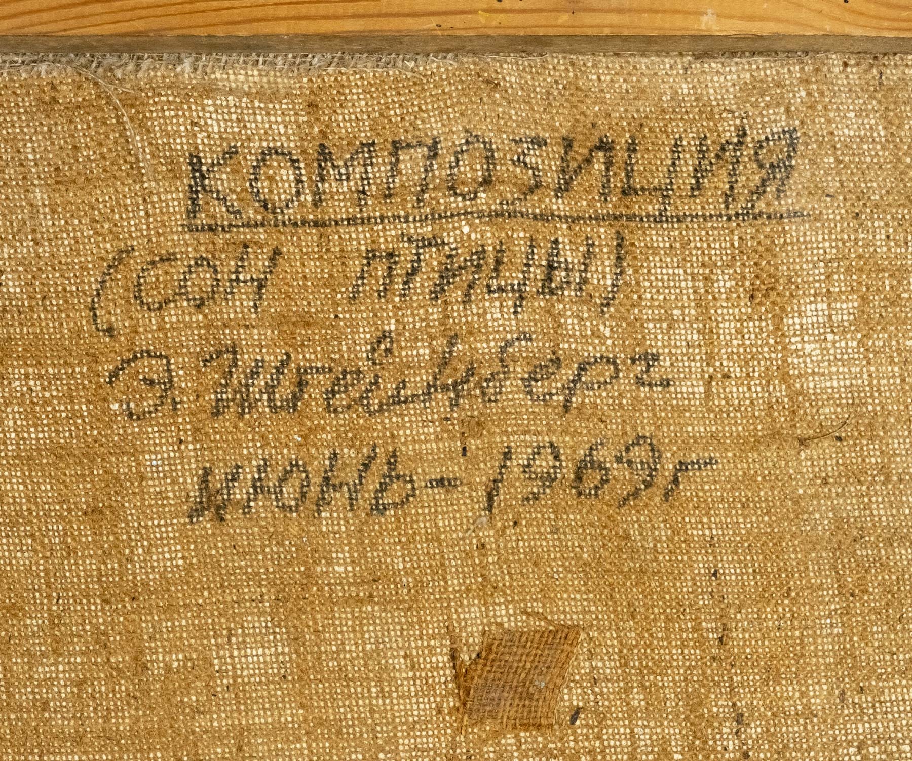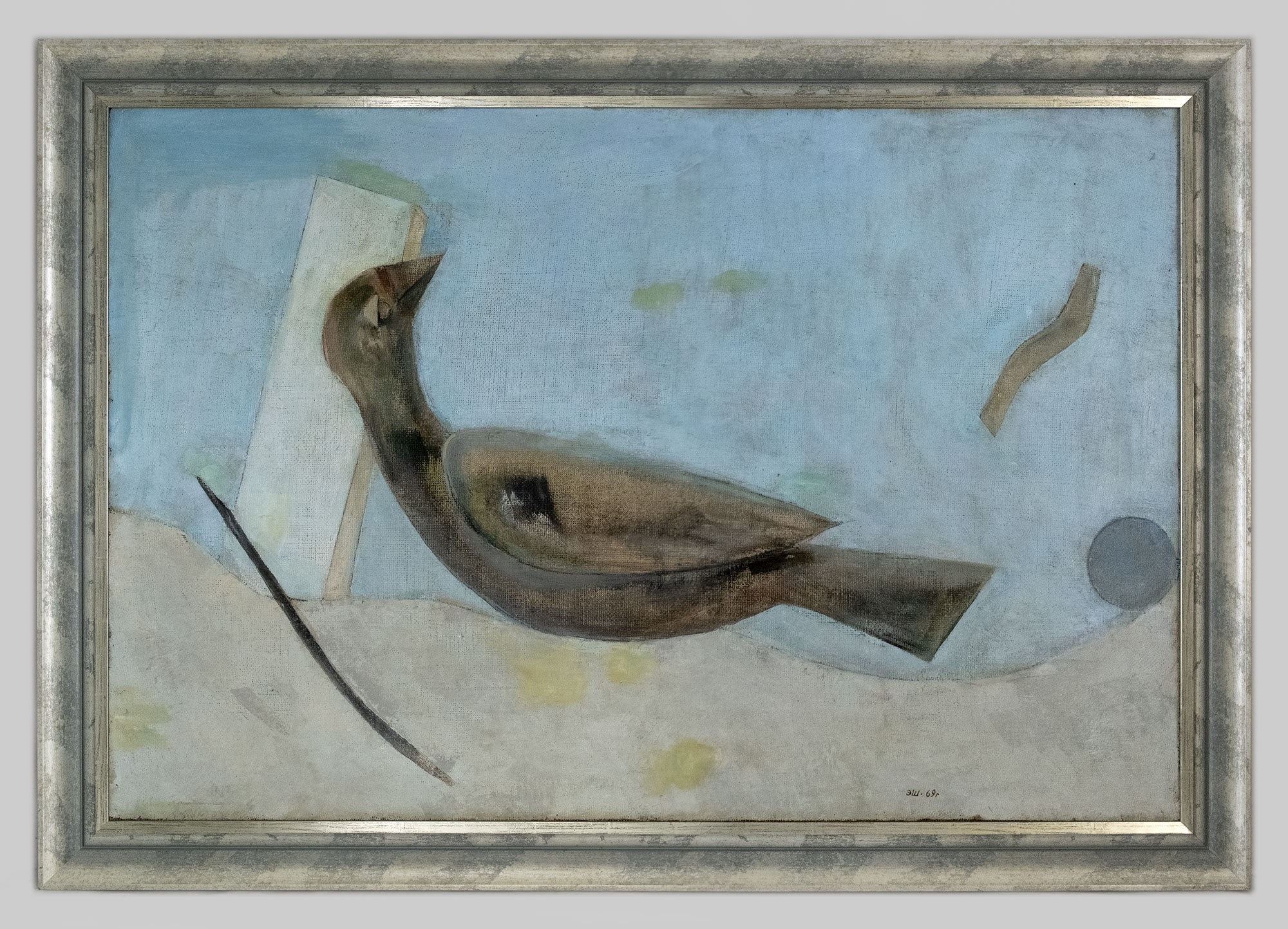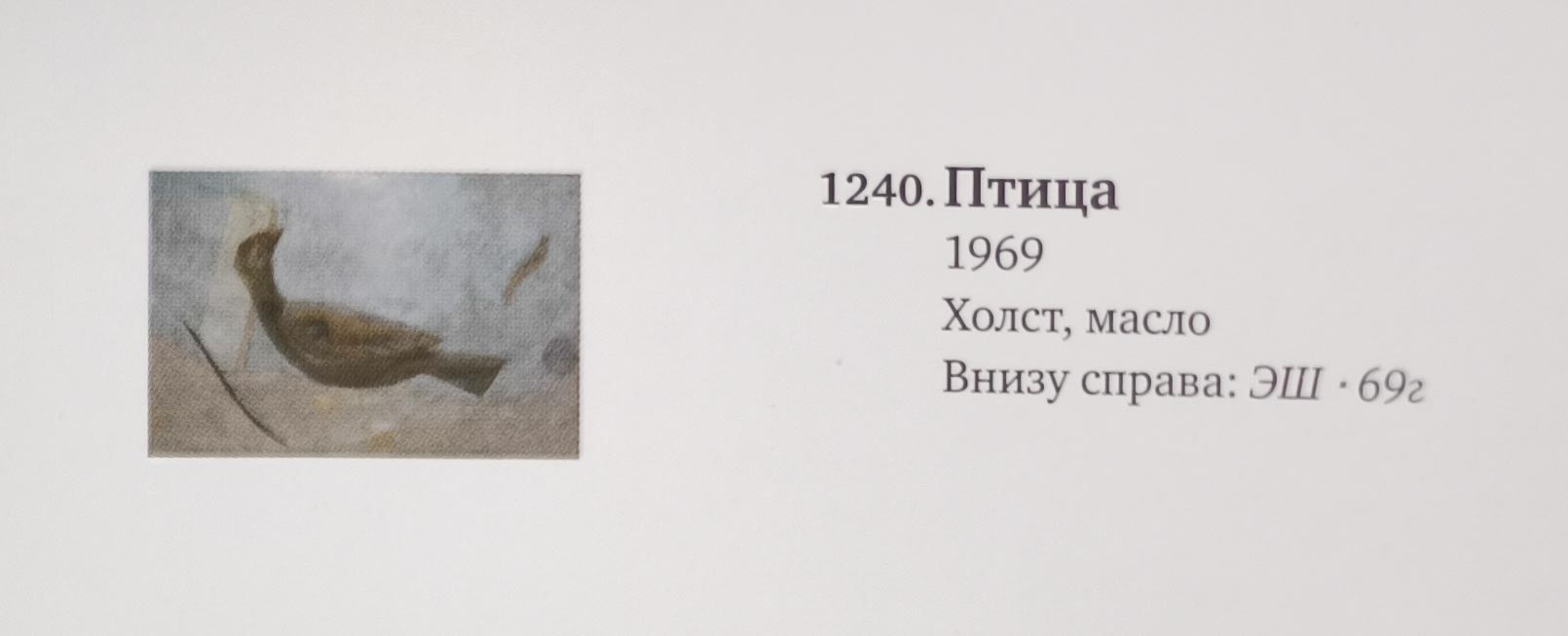 На обороте название, подпись и дата: Композиция / (Сон птицы) / Э. Штейнберг / июнь — 1969 г